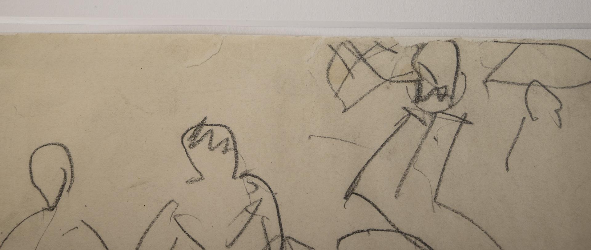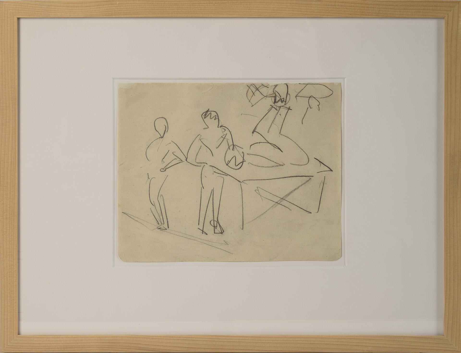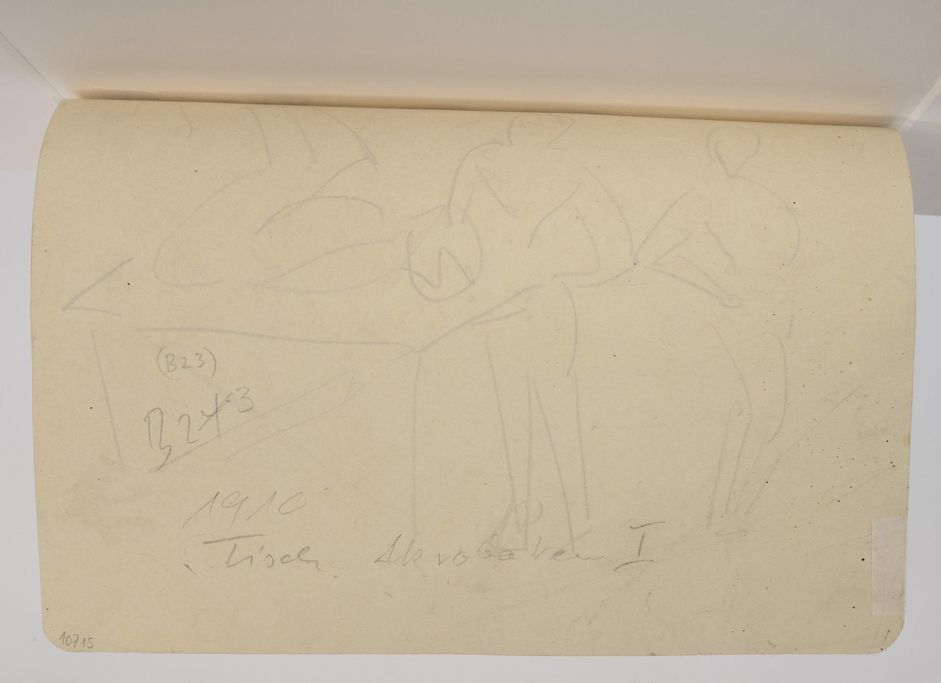 Rückseitig bezeichnet "Tischakrobaten 1910". Siehe Presler: vermutlich Skizzenbuch 16. / Lise Gujer: 1893 - 1967 in Sertig, Gemeinde Davos, war eine Schweizer Textilkünstlerin und arbeitete eng mit Kirchner zusammen.
