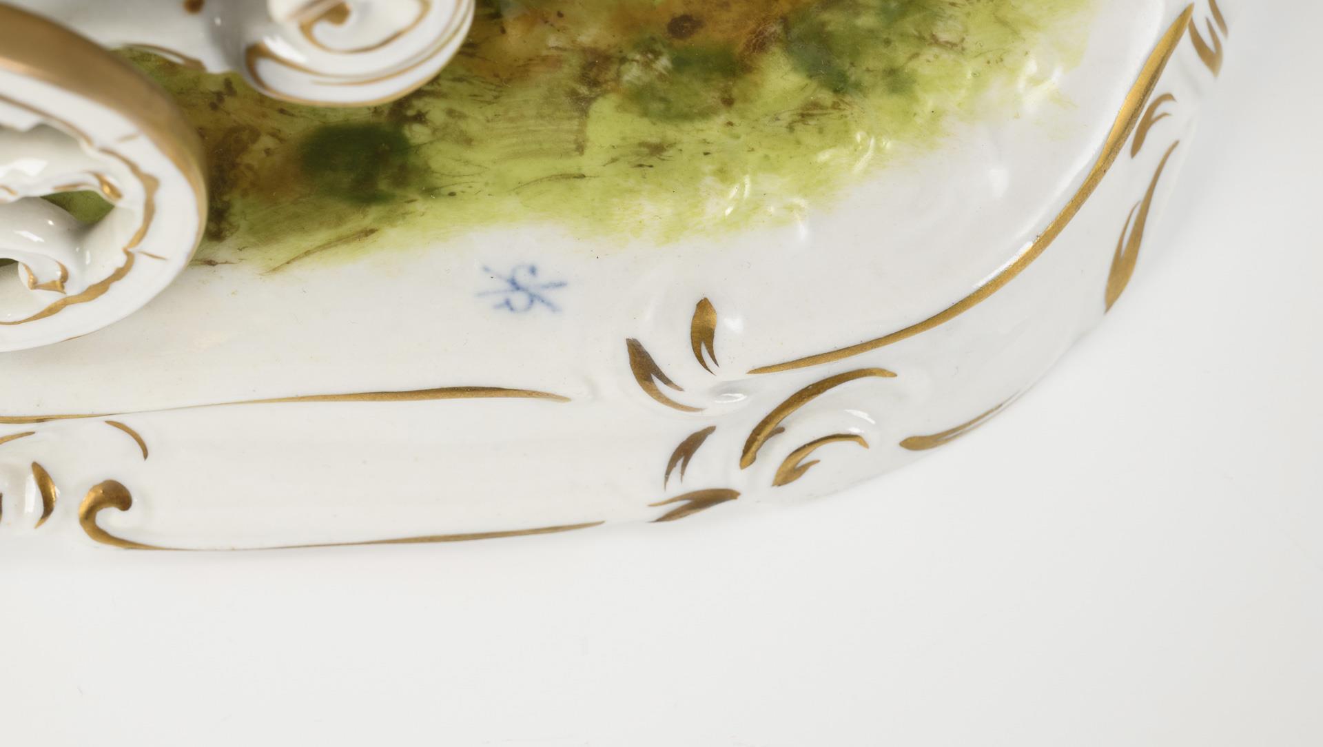 Polychrom bemalt, goldstaffiert. H 20,5 cm, L 31,5 m.