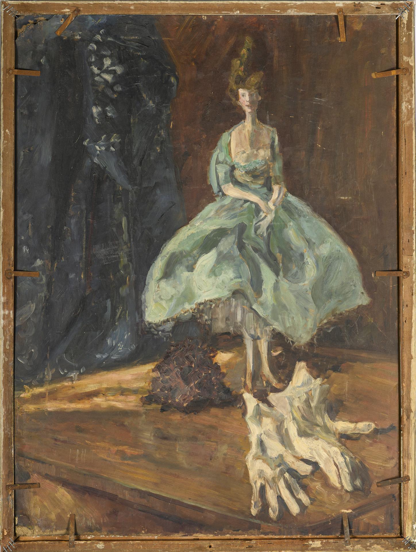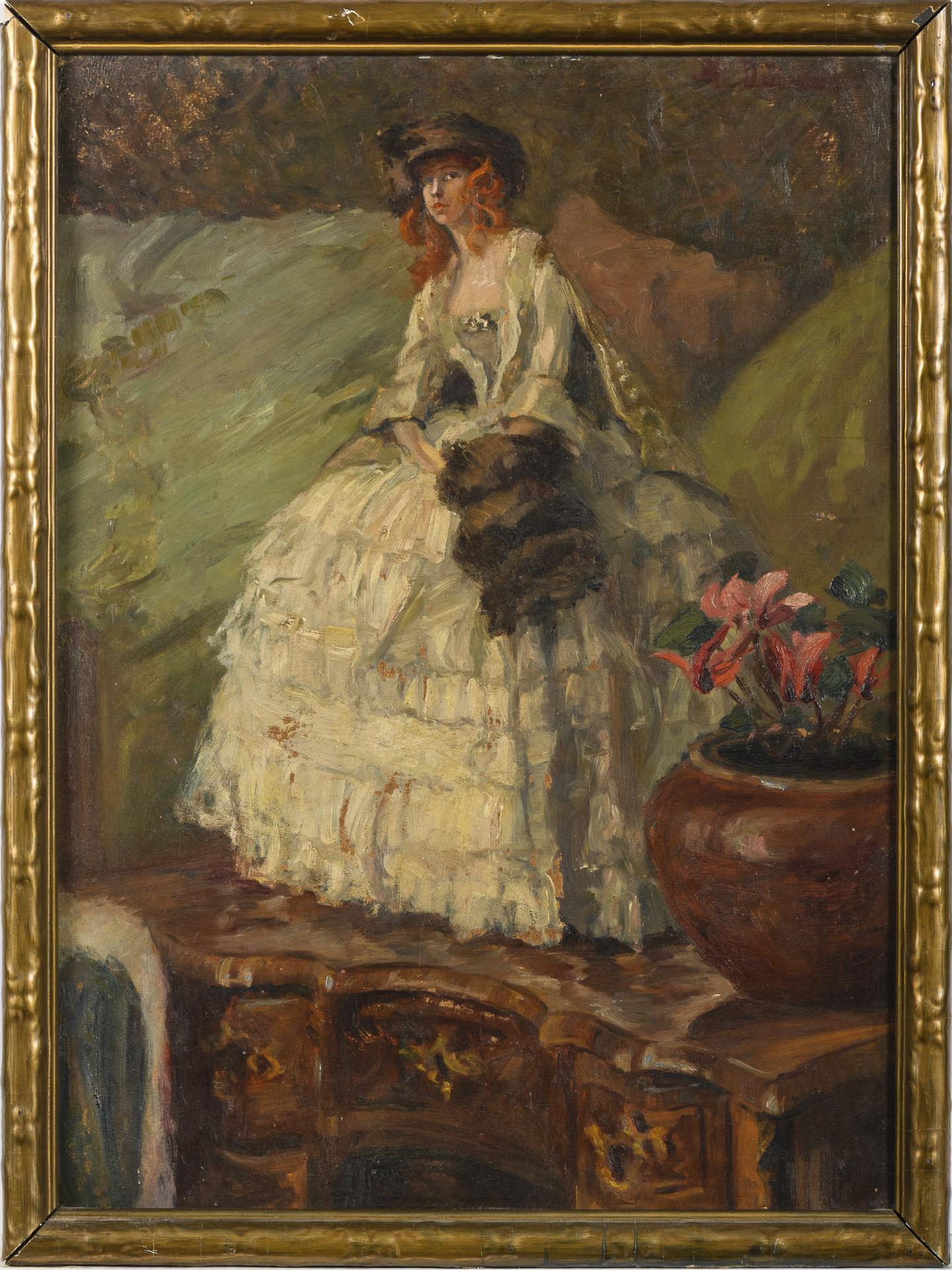 Öl/Malkarton. Rechts oben undeutlich signiert, verso weiteres Stillleben mit Porzellanfigur und weißen Handschuhen. Um 1900.