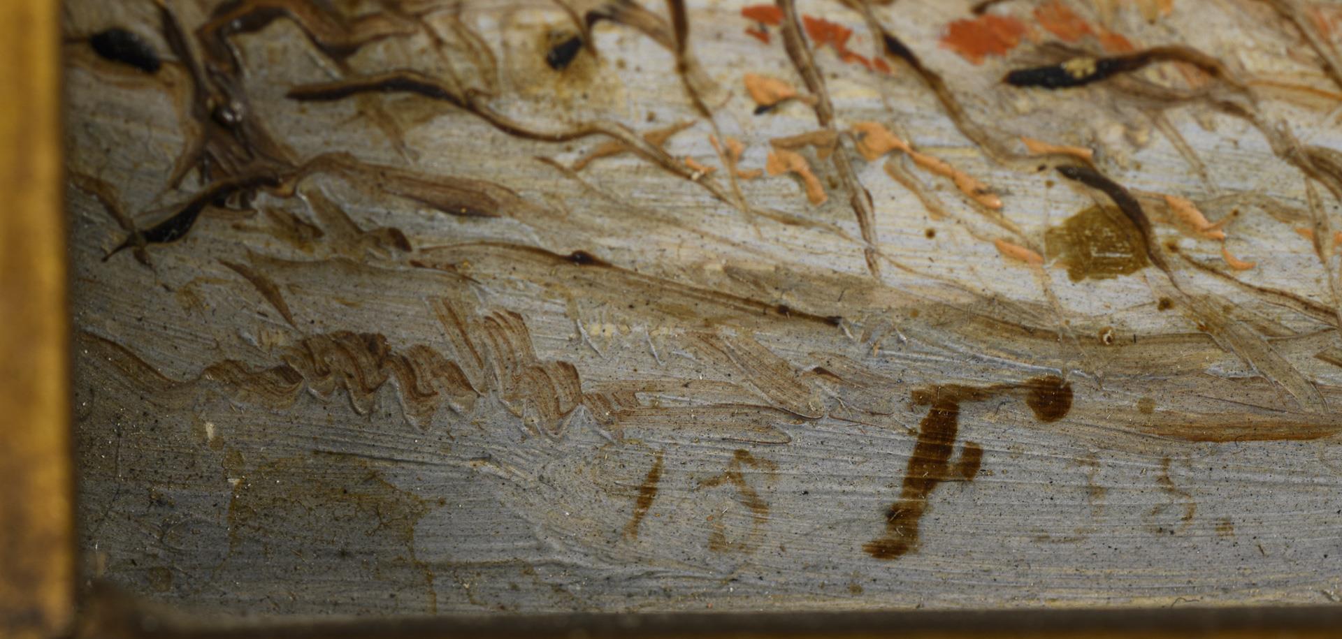 Öl/Holz. Links unten monogrammiert, auf Rahmenschild bezeichnet. 1838.