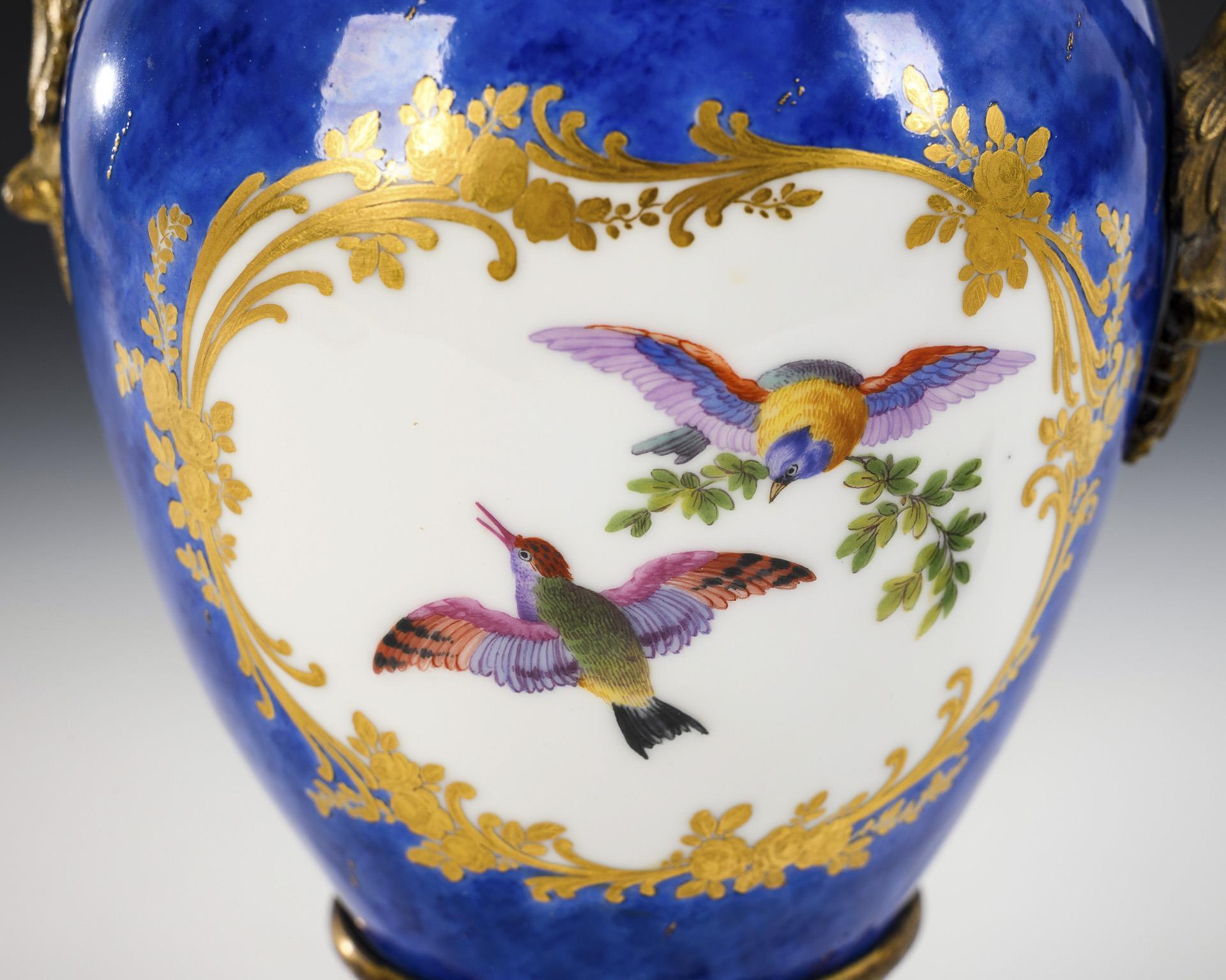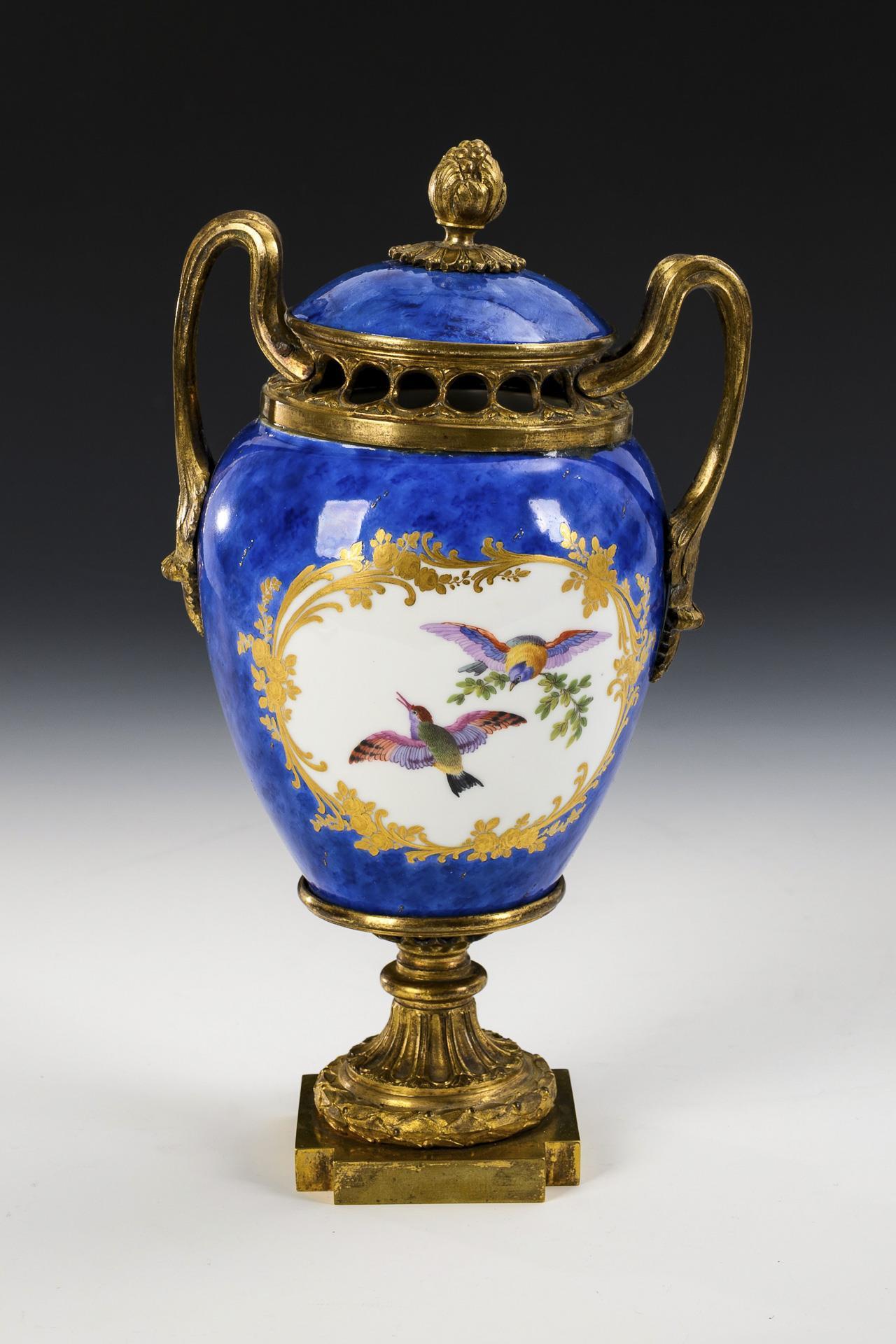 Potpourrivase mit Vogelmalerei und Bronzemontierung. Sèvres.