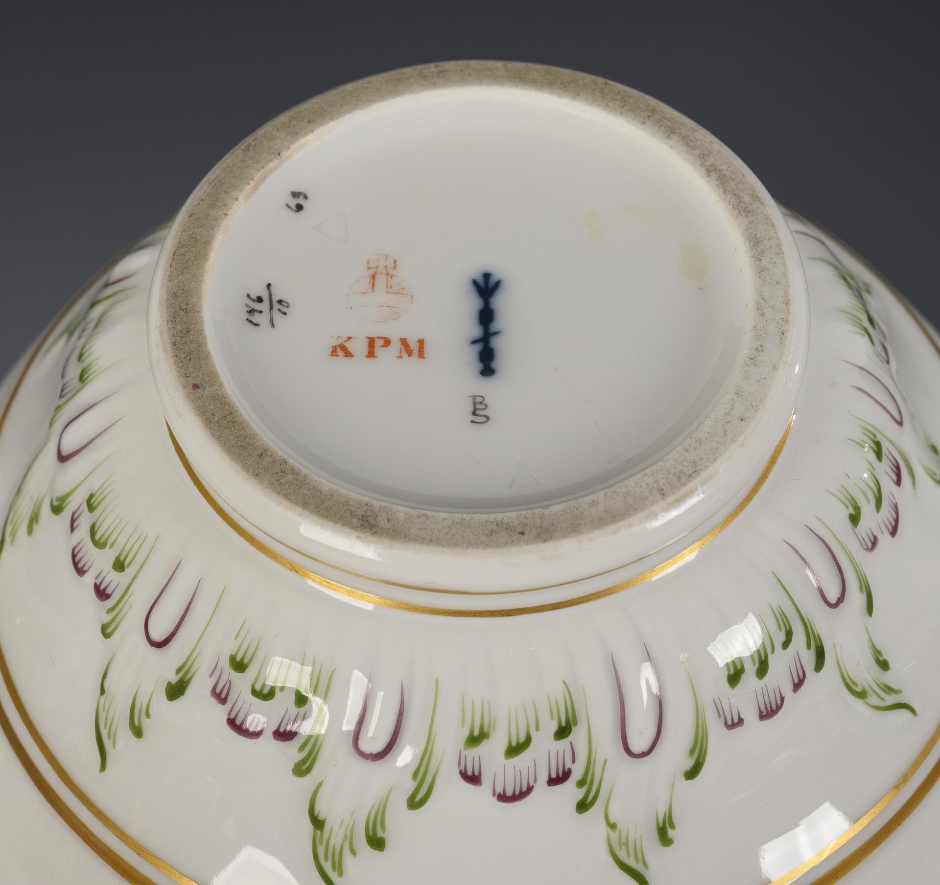 Widderkopfvase mit Blumenmalerei. KPM Berlin.