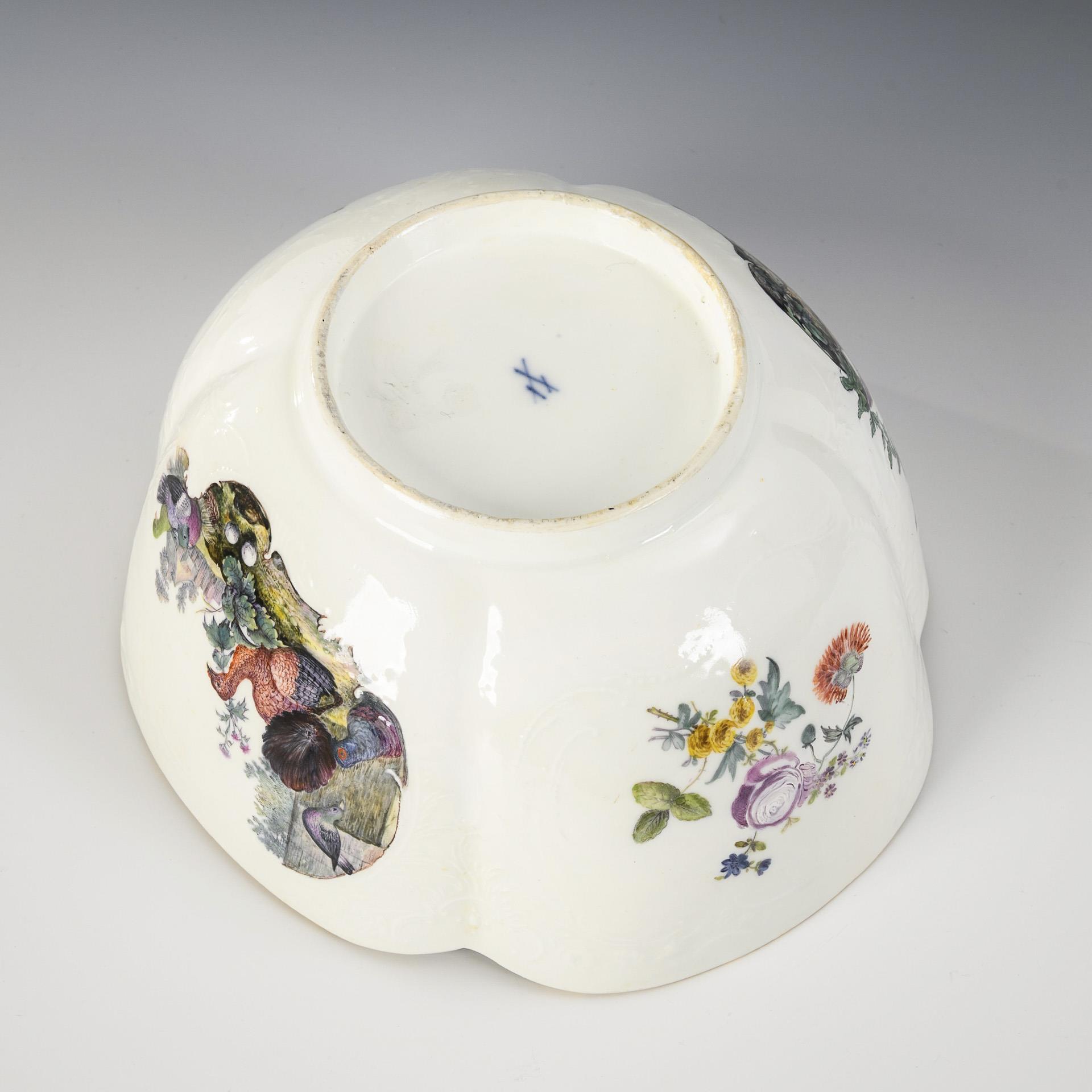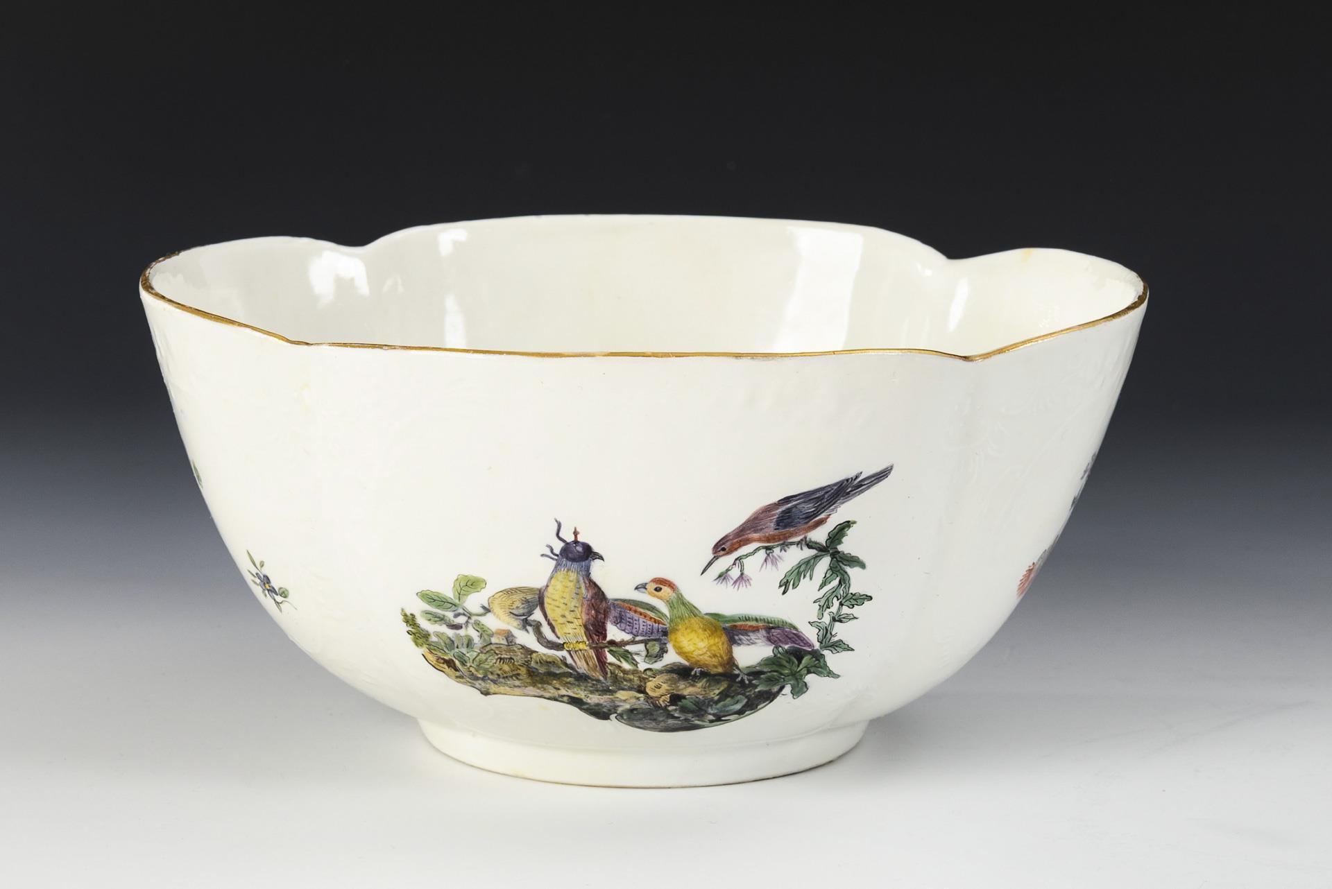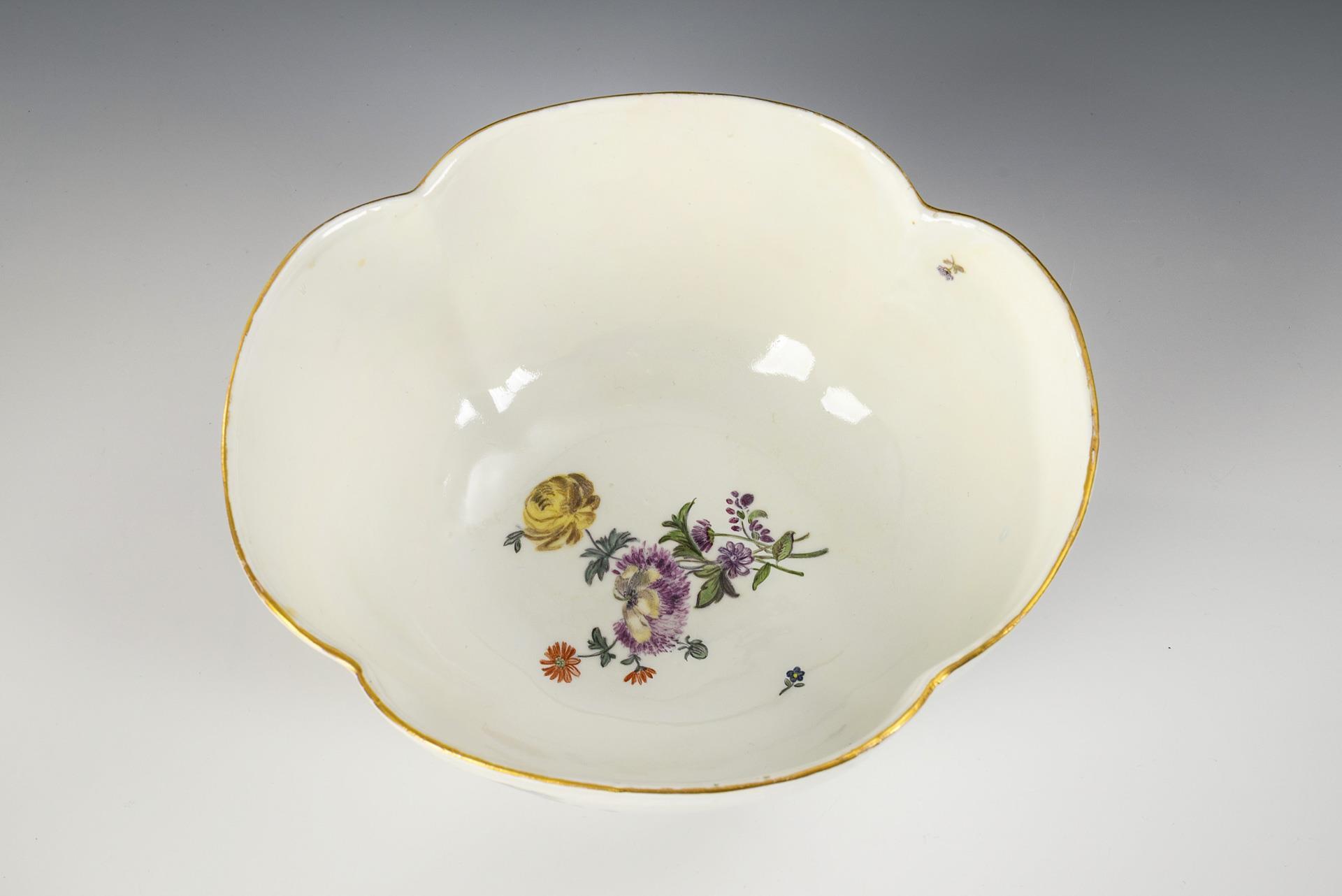 Barocke Vierpasskumme mit Vogelmalerei. Meissen.