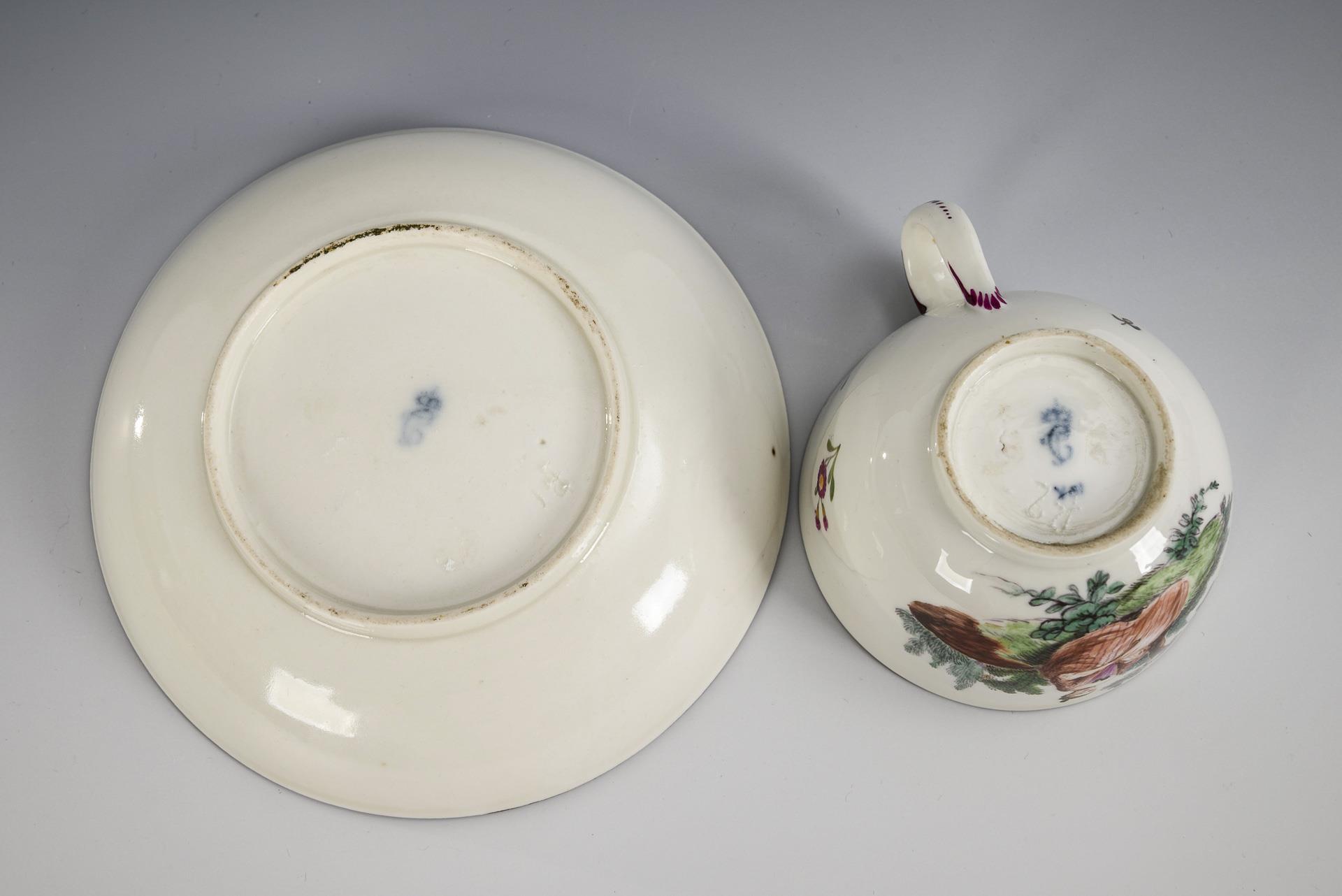 Polychrom bemalt, goldstaffiert. Tasse (H 5 cm), originale Untertasse (Ø 13,5 cm).