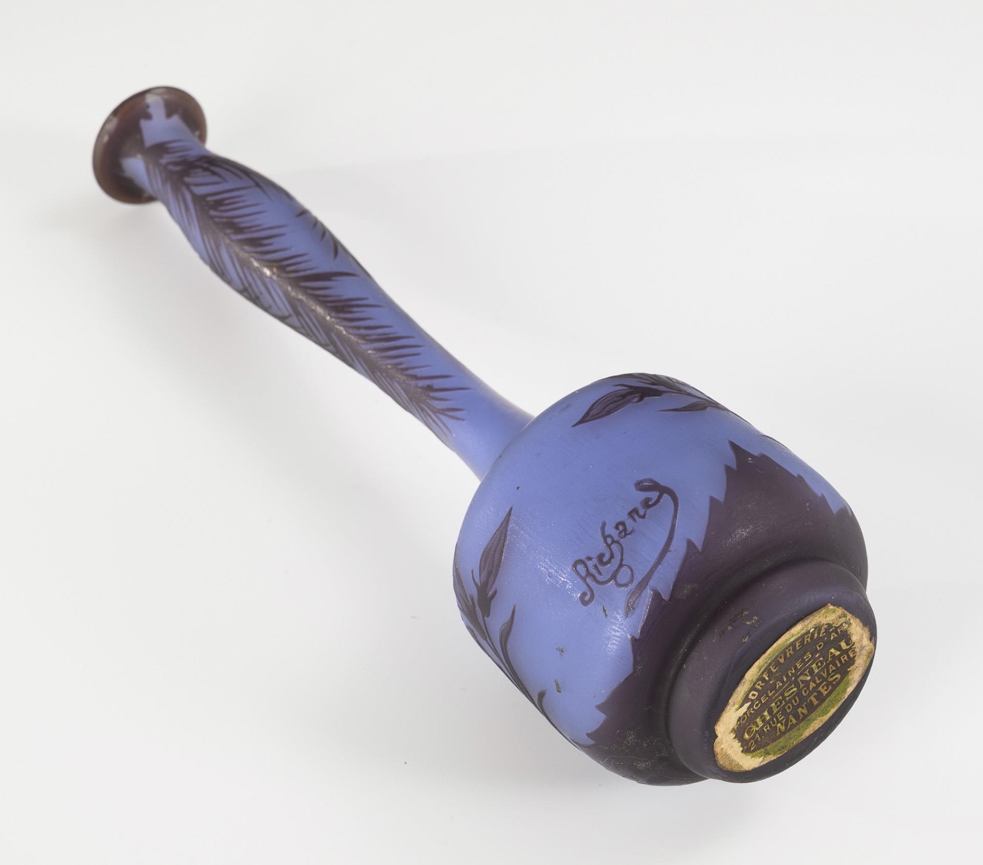 Farbloses Glas mit hellviolettem Innenfang und violettem Überfang. H 22 cm.