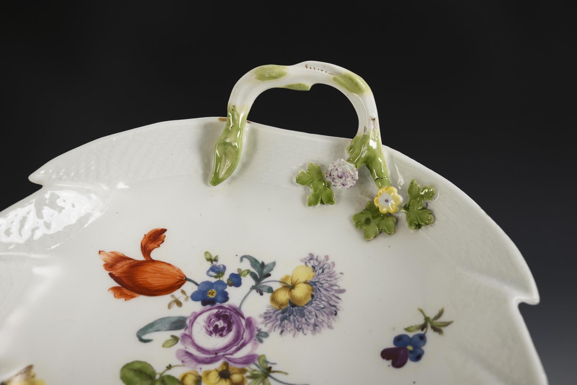Barocke Blattschale mit Blumenmalerei. Meissen.
