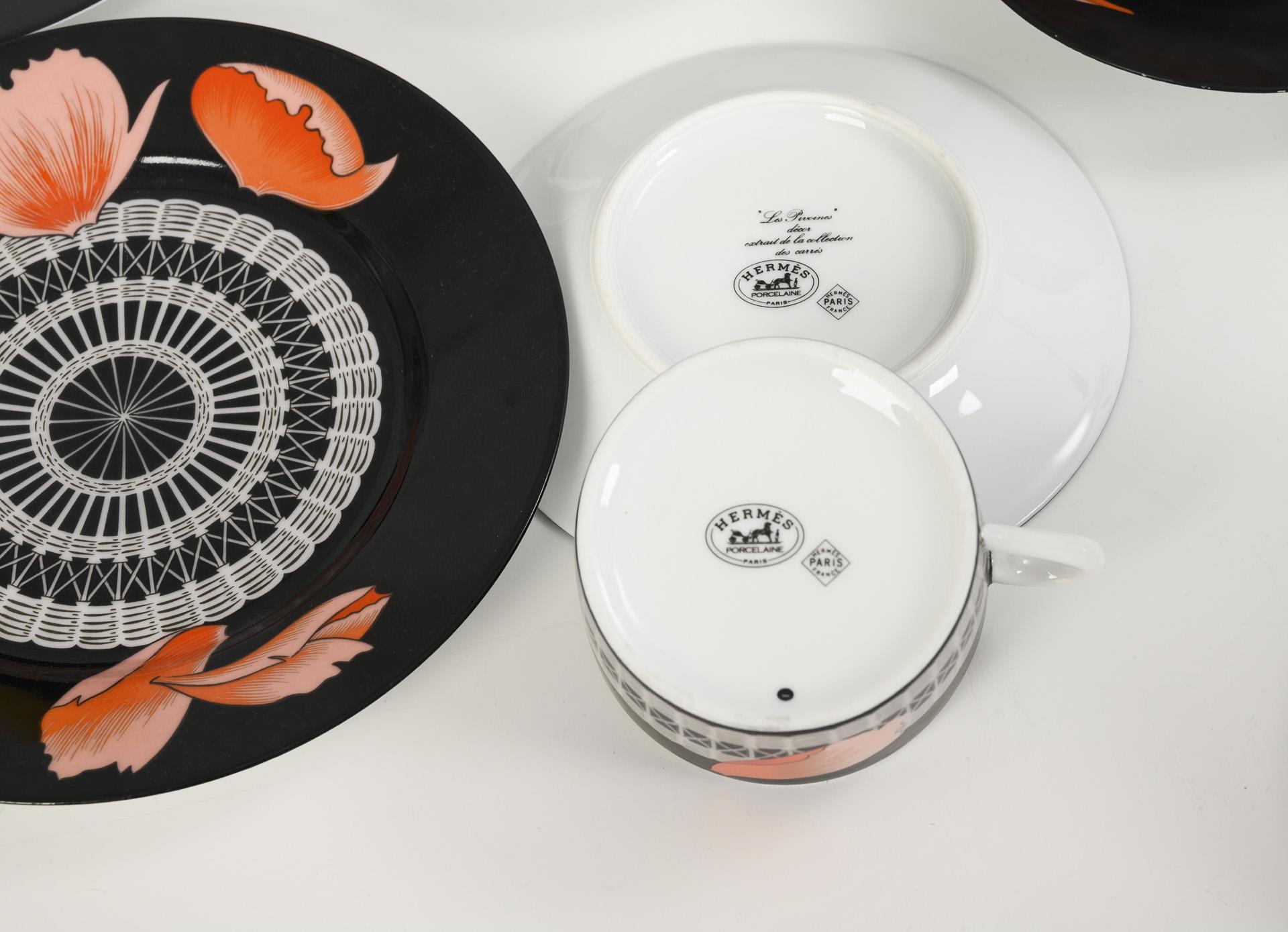 18 Teile. Milchkännchen (H 9,5 cm), Zuckerdose (H 10,5 cm), 5 Tassen (H 5,5 cm), 5 Untertassen (Ø 14,5 cm) und 6 Kuchenteller (Ø 19 cm). Ohne Kaffeekanne. Wenige Farbfehlstellen an den Untertassen.