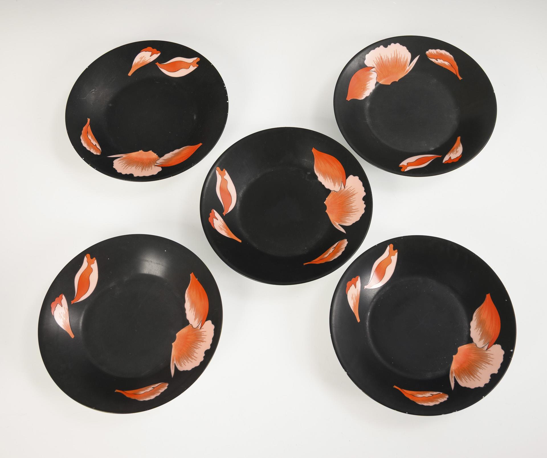 Schwarzer Fond, stilisiertes Floraldekor in Rot. H max. 10,5 cm.