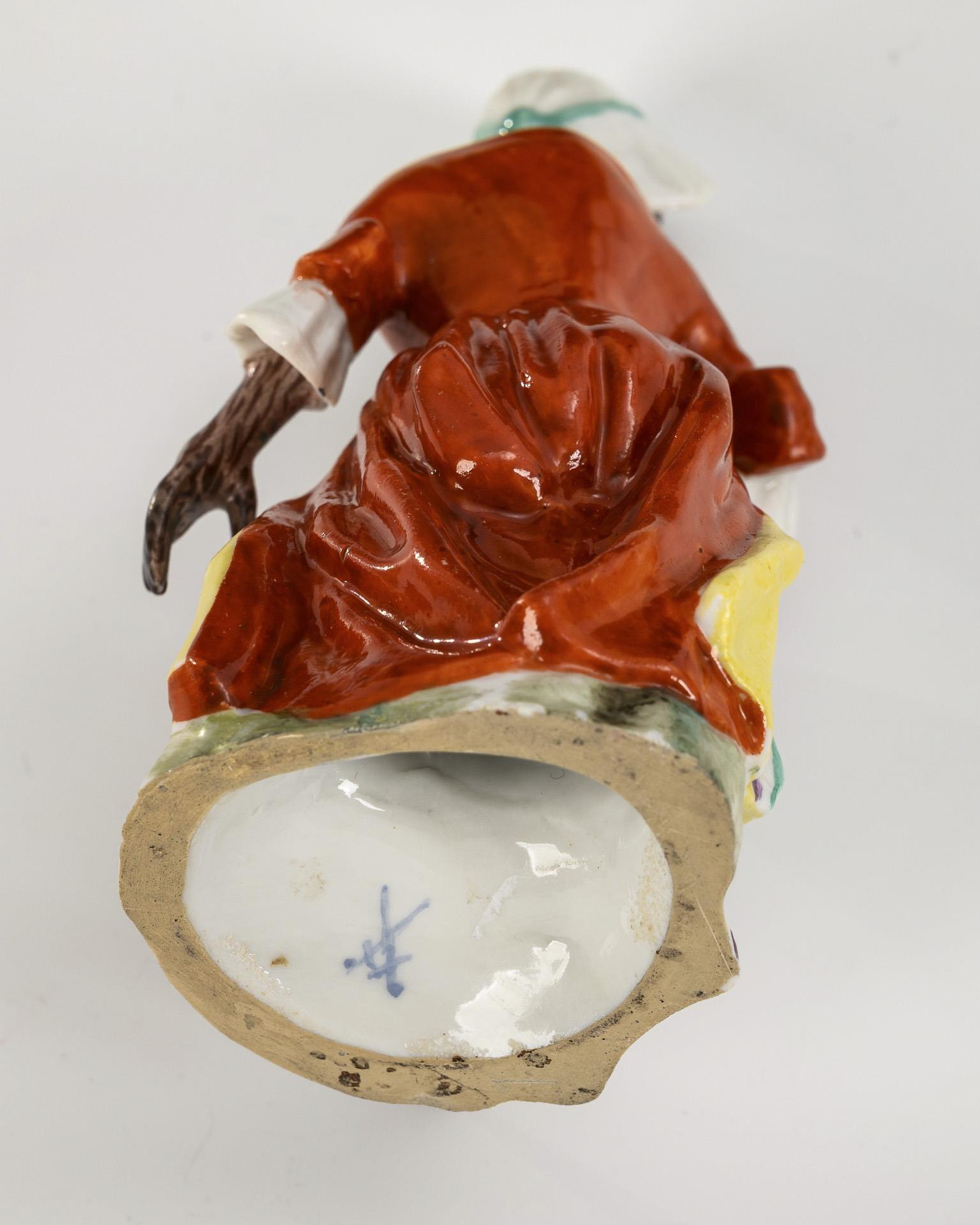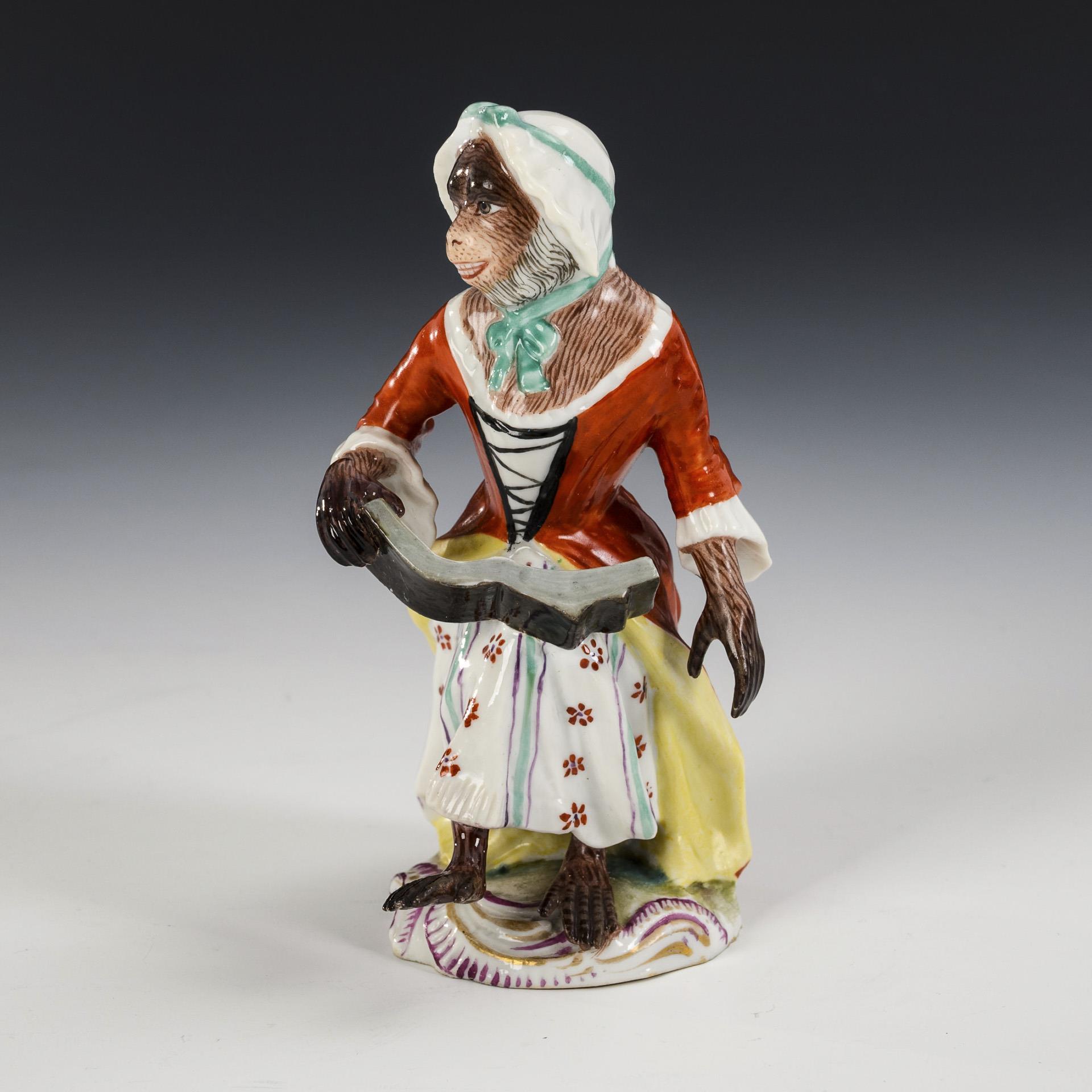 Sitzender, singender Affe mit Buch. Rechte Hand mit Notenbuch, partiell Haube restauriert.