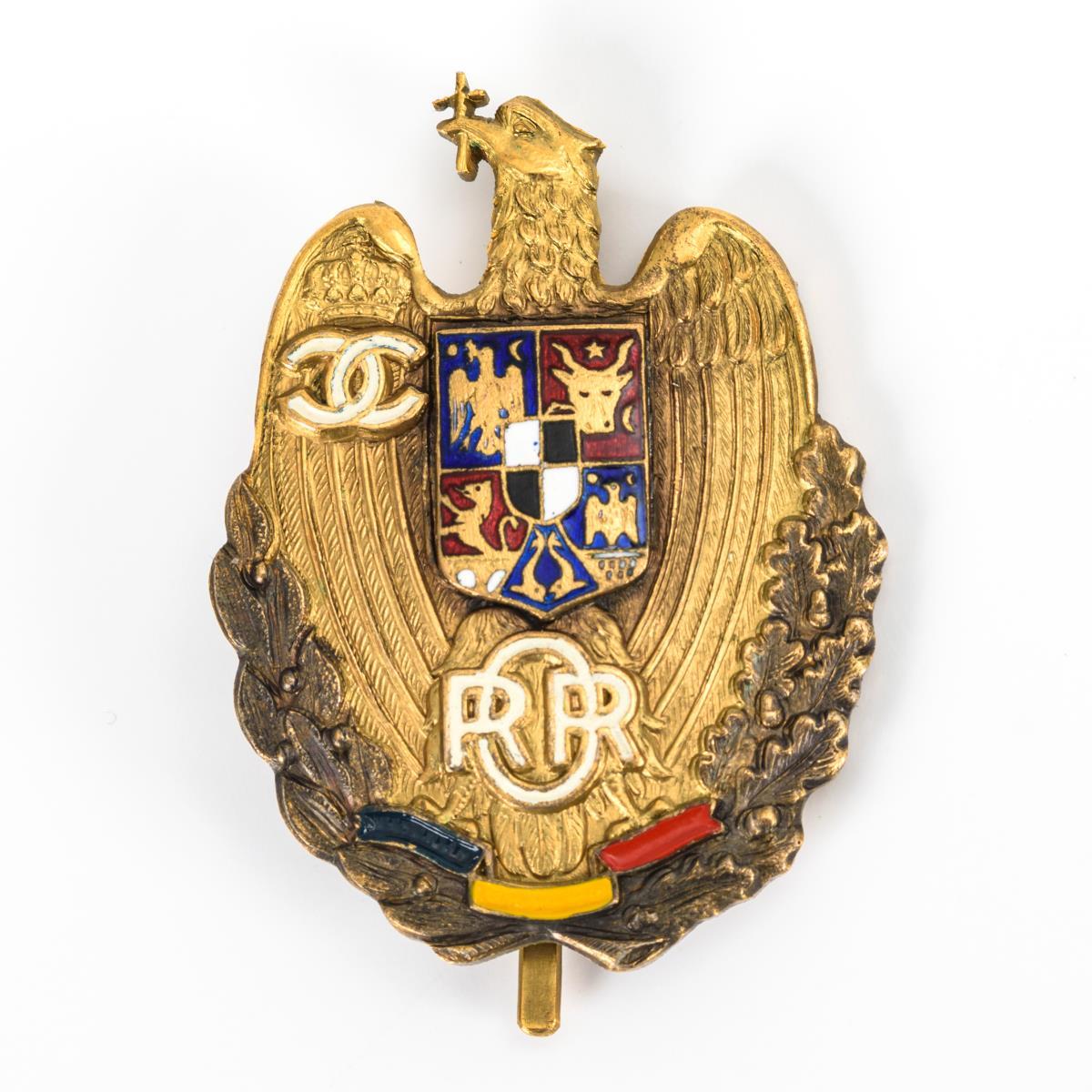 Rumänisches Abzeichen mit Adler, Wappen und Monogramm.