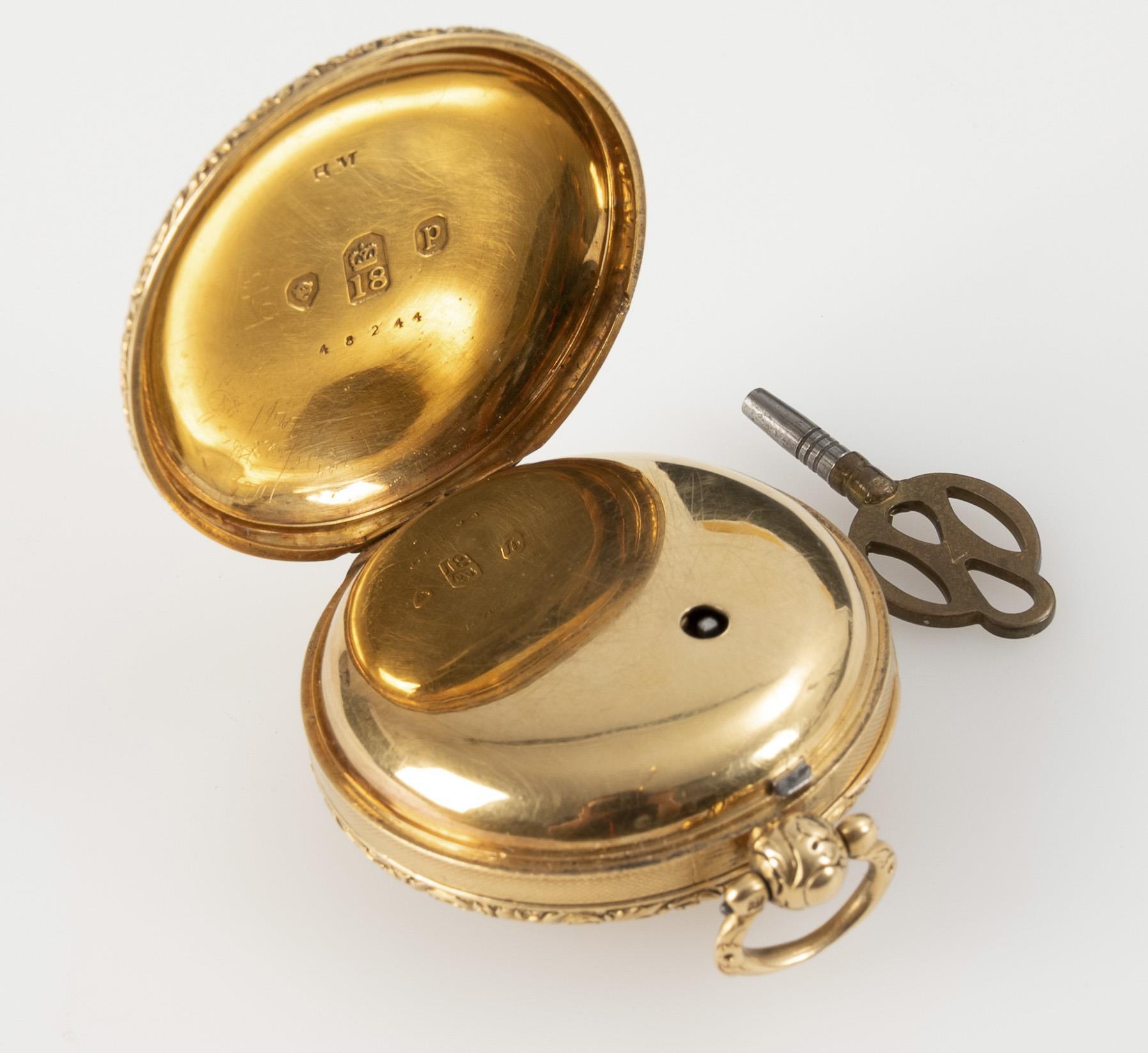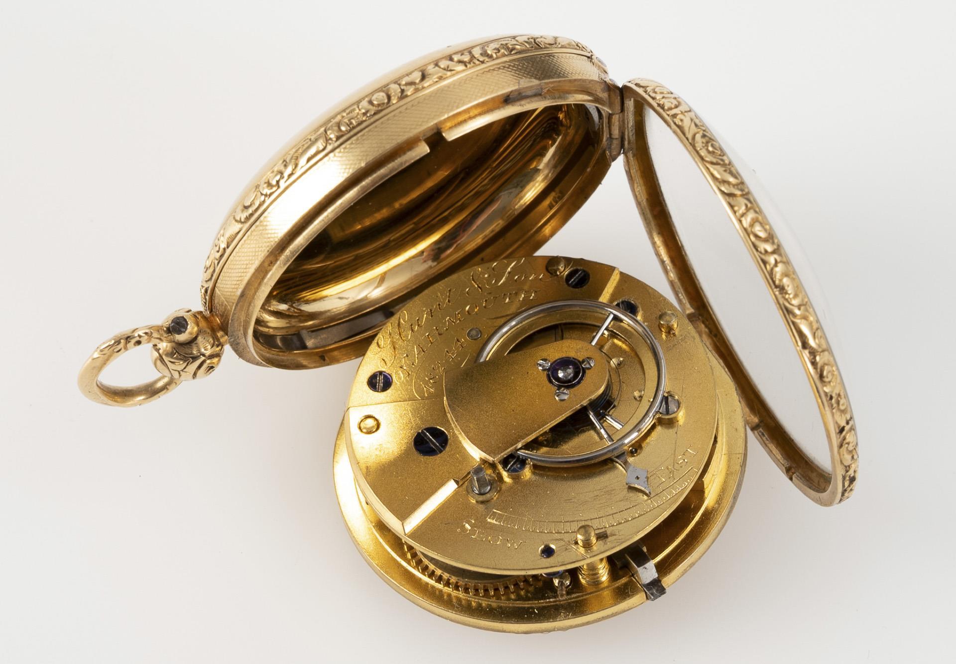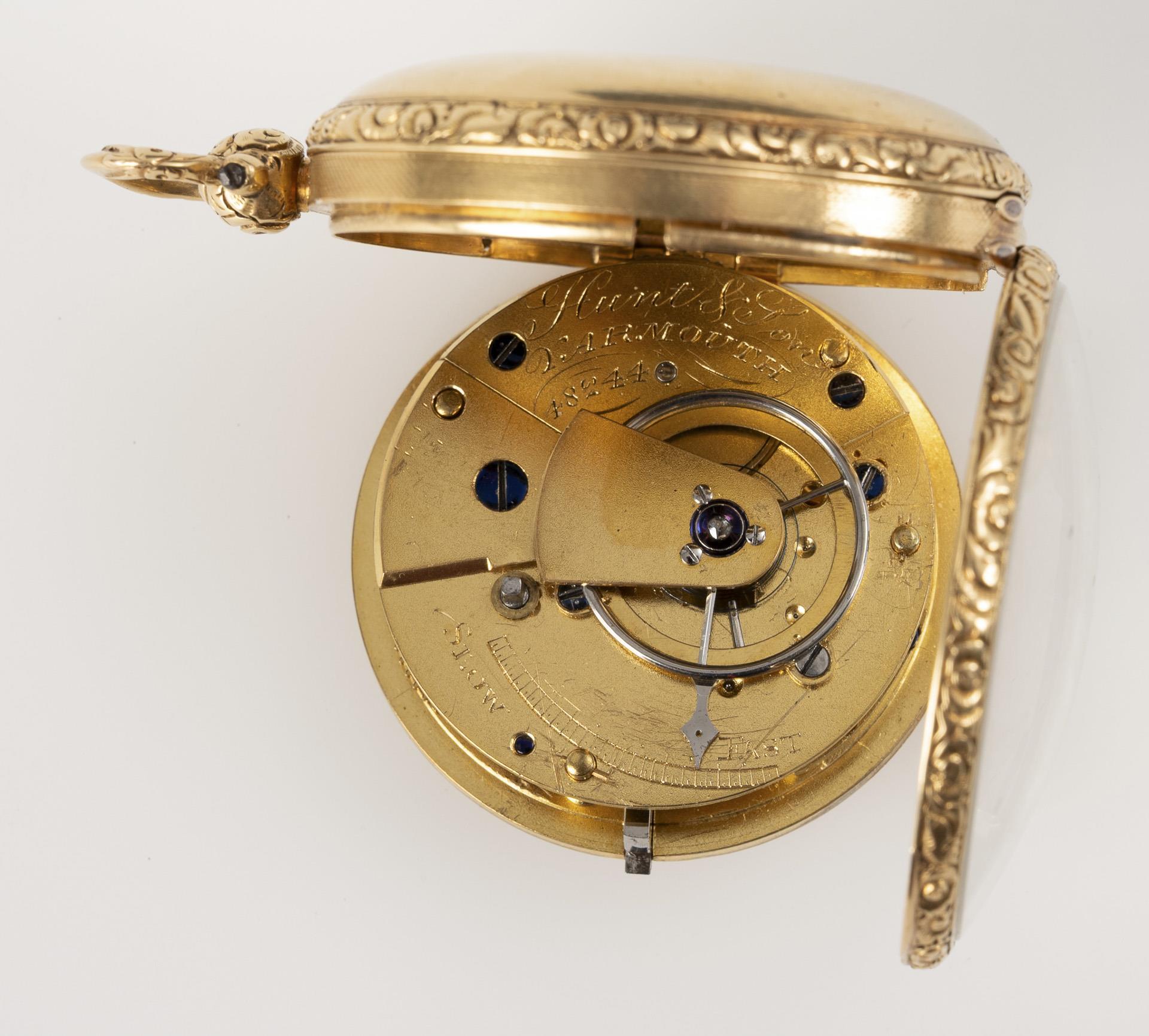 Goldene englische Schlüsseltaschenuhr "Hunt & Son, Yarmouth".