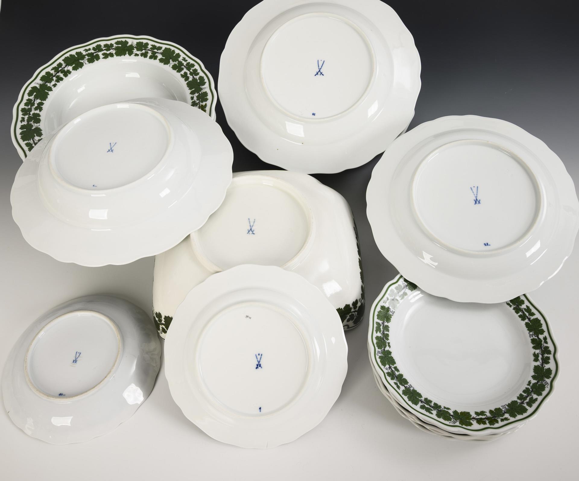 27 Teller und 1 Schüssel mit Weinlaubdekor. Meissen.