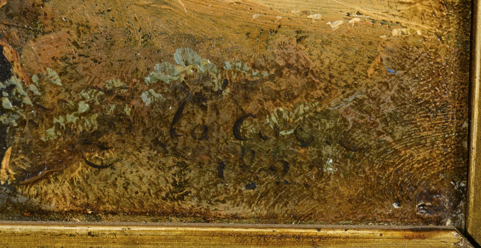 Öl/Malkarton. Rechts unten undeutlich signiert. 1829.