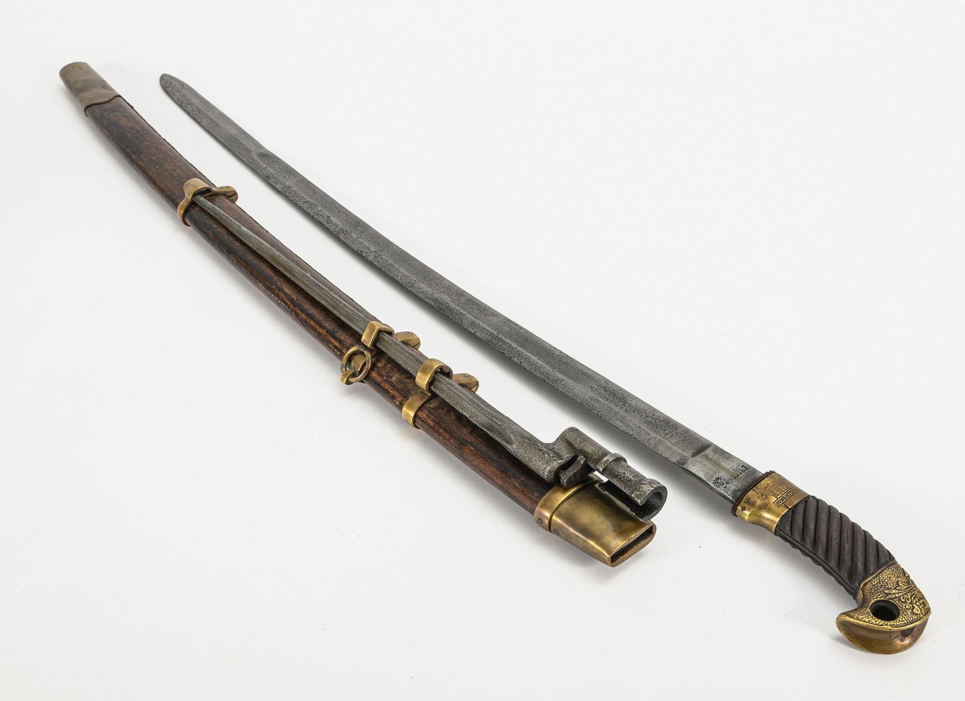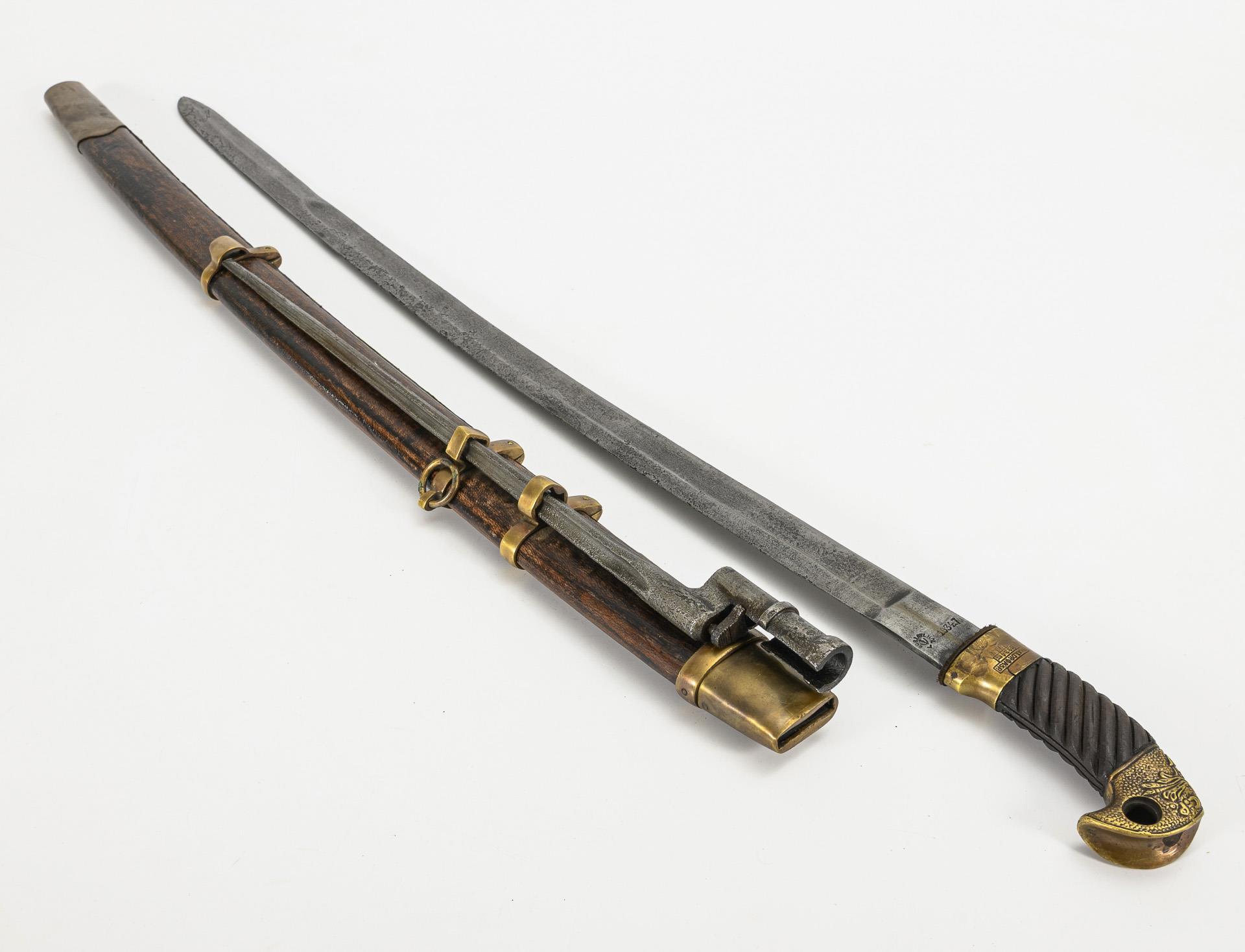 Sie befinden sich hier: Startseite Kategorien Varia Qualitätvolle Replik - Russische Schaschka mit Scheide und Bajonett