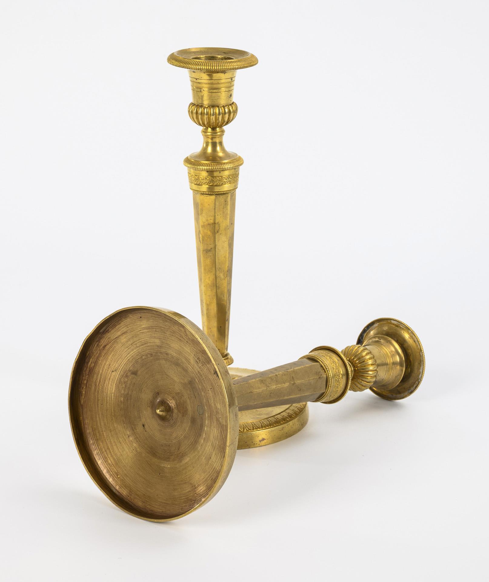 Paar vergoldete, französische Empireleuchter.