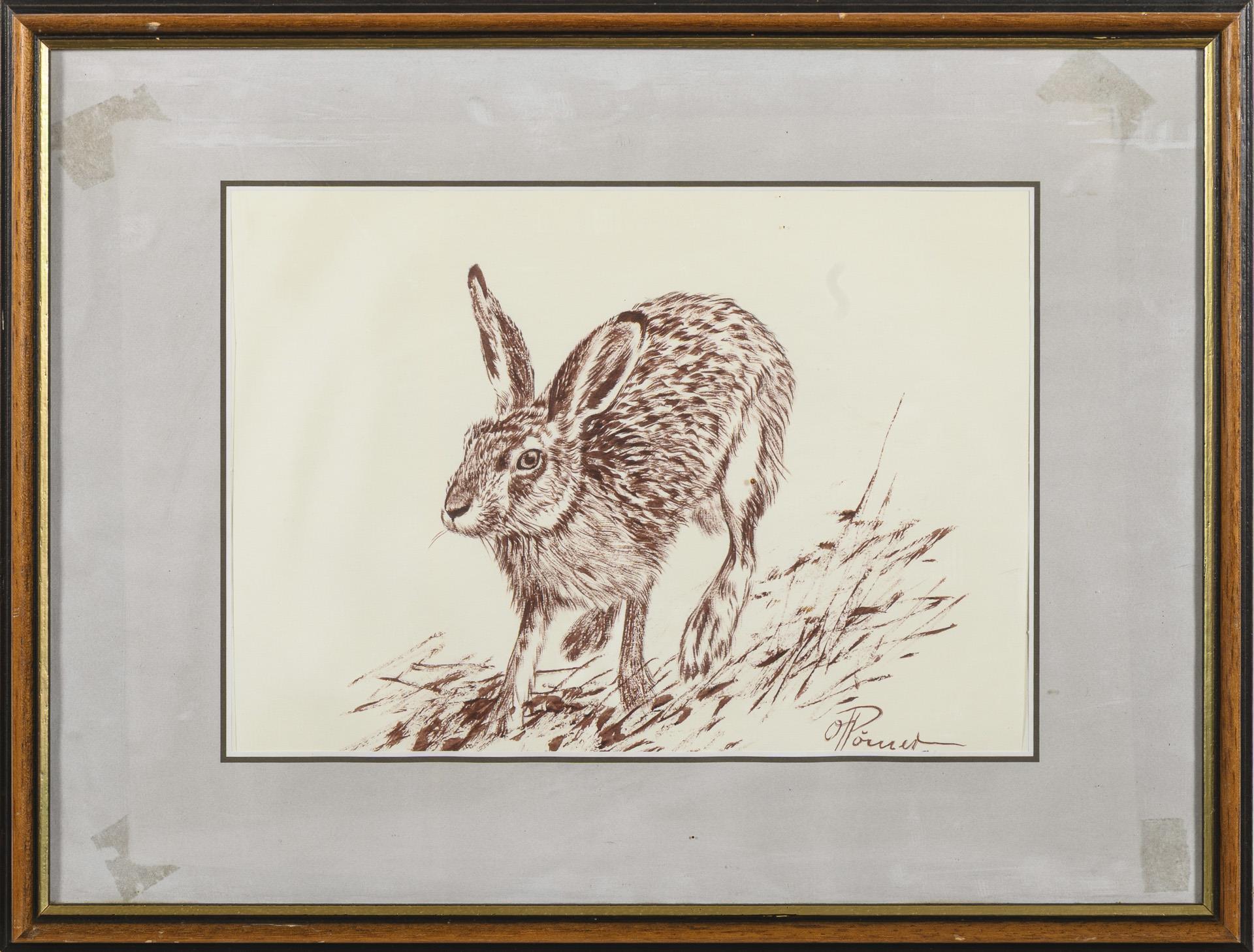 Bräunliche Tuschzeichnung. Rechts unten signiert.