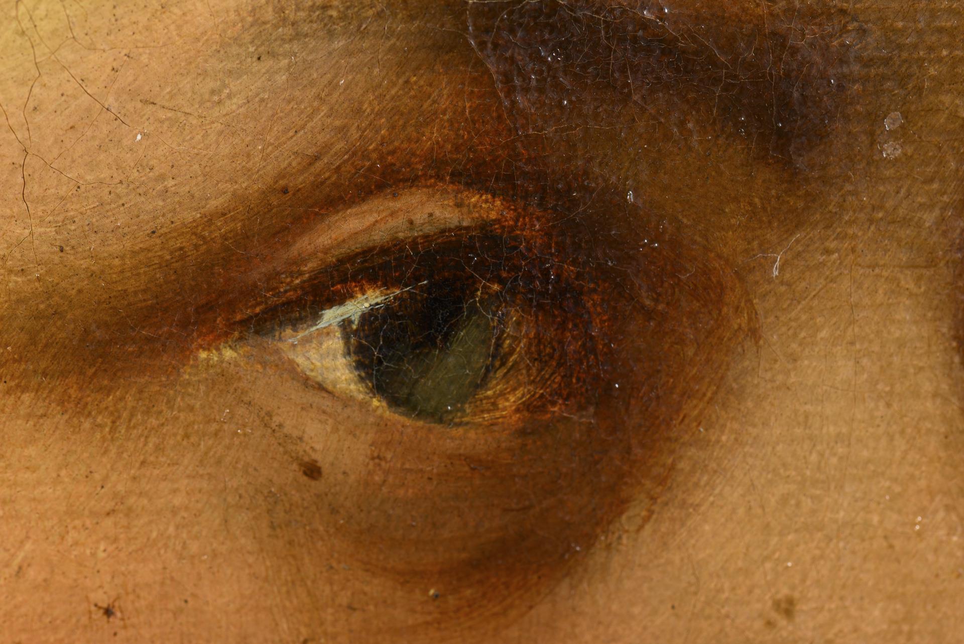 60 x 50 cm (ovaler Keilrahmen). gerahmt : 74 x 64 cm (Goldstuckrahmen mit ovalem Bildausschnitt).