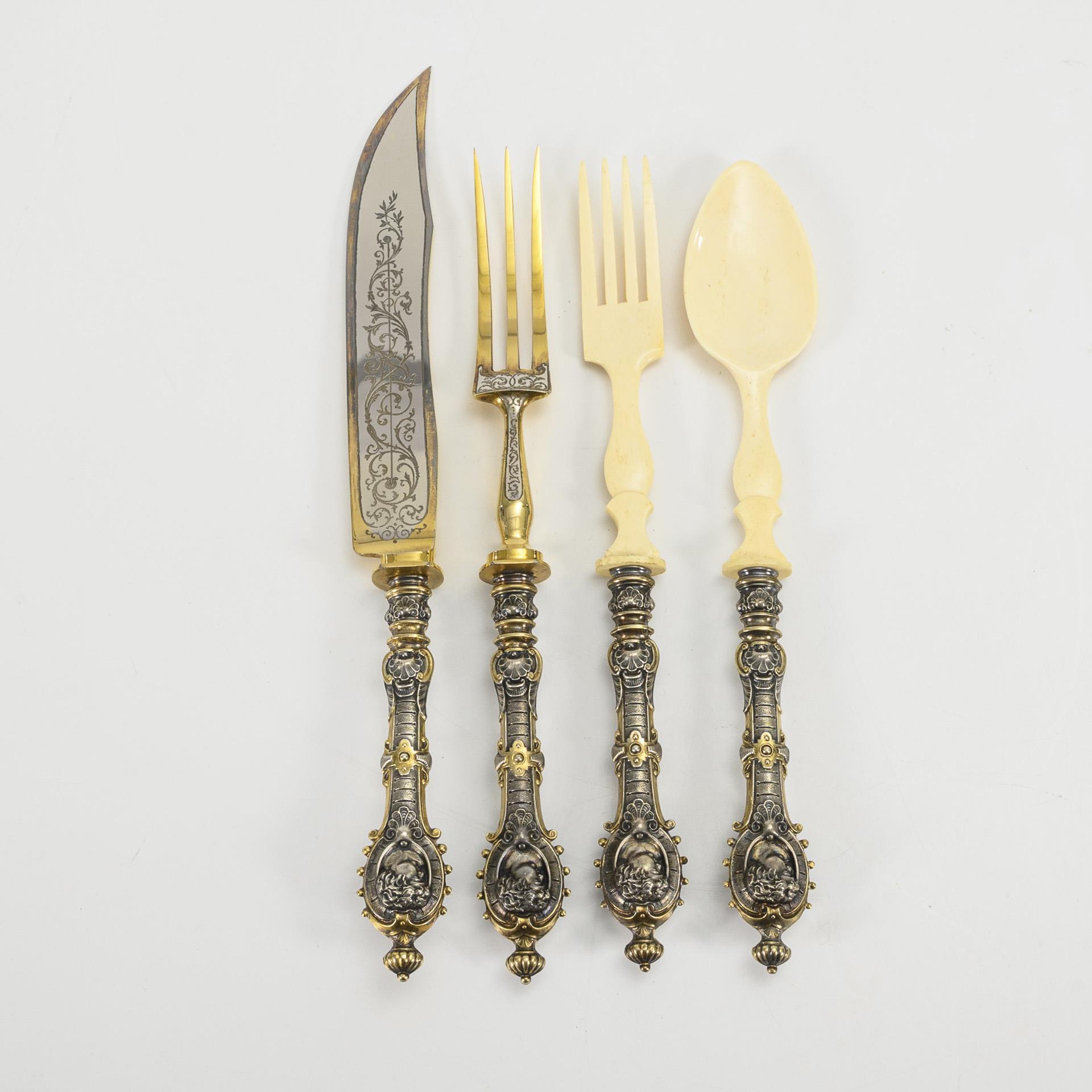 Metall, versilbert und teilvergoldet. L max. 32,5 cm.