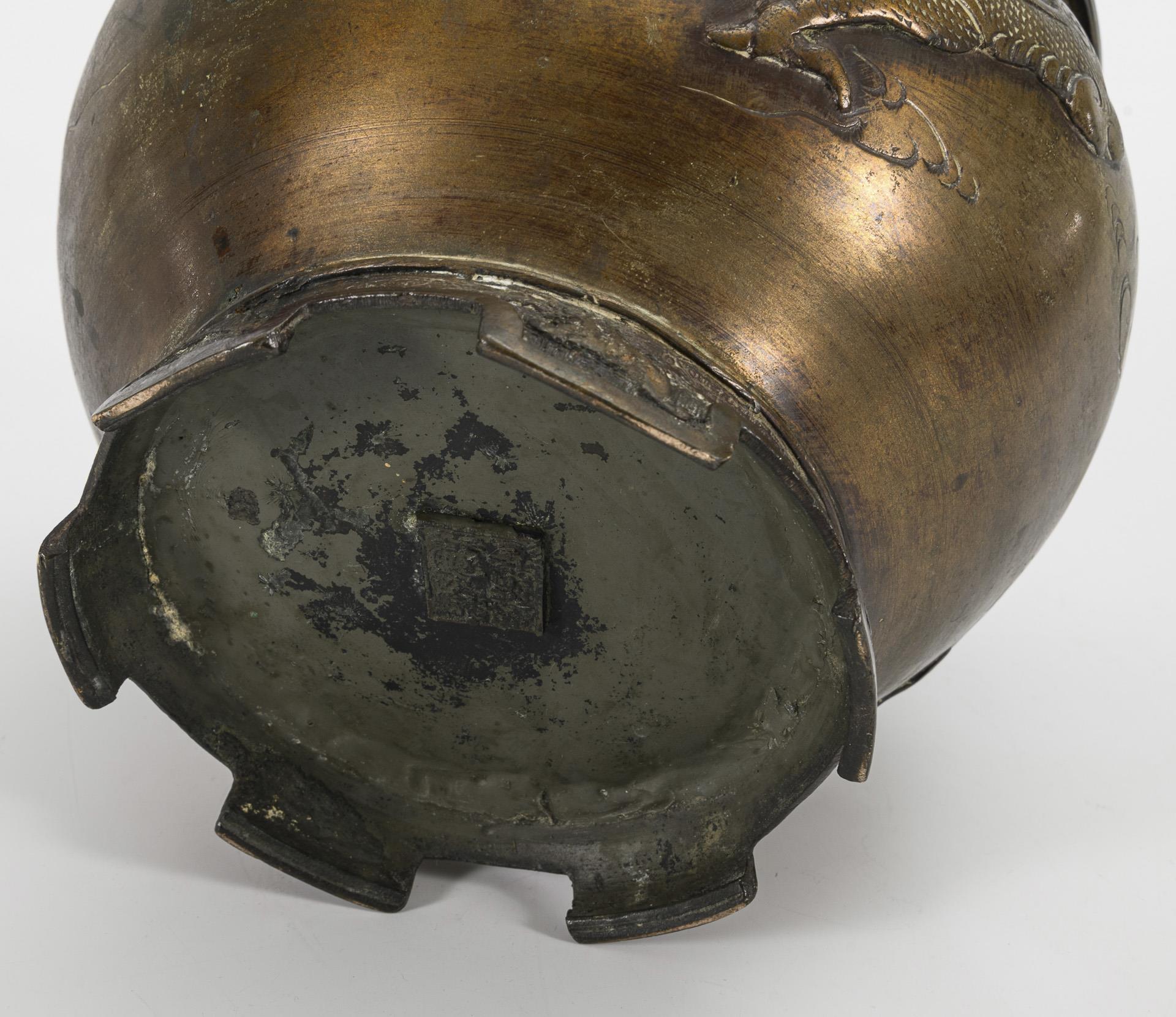Bronzeübertopf mit Drachenmotiv.