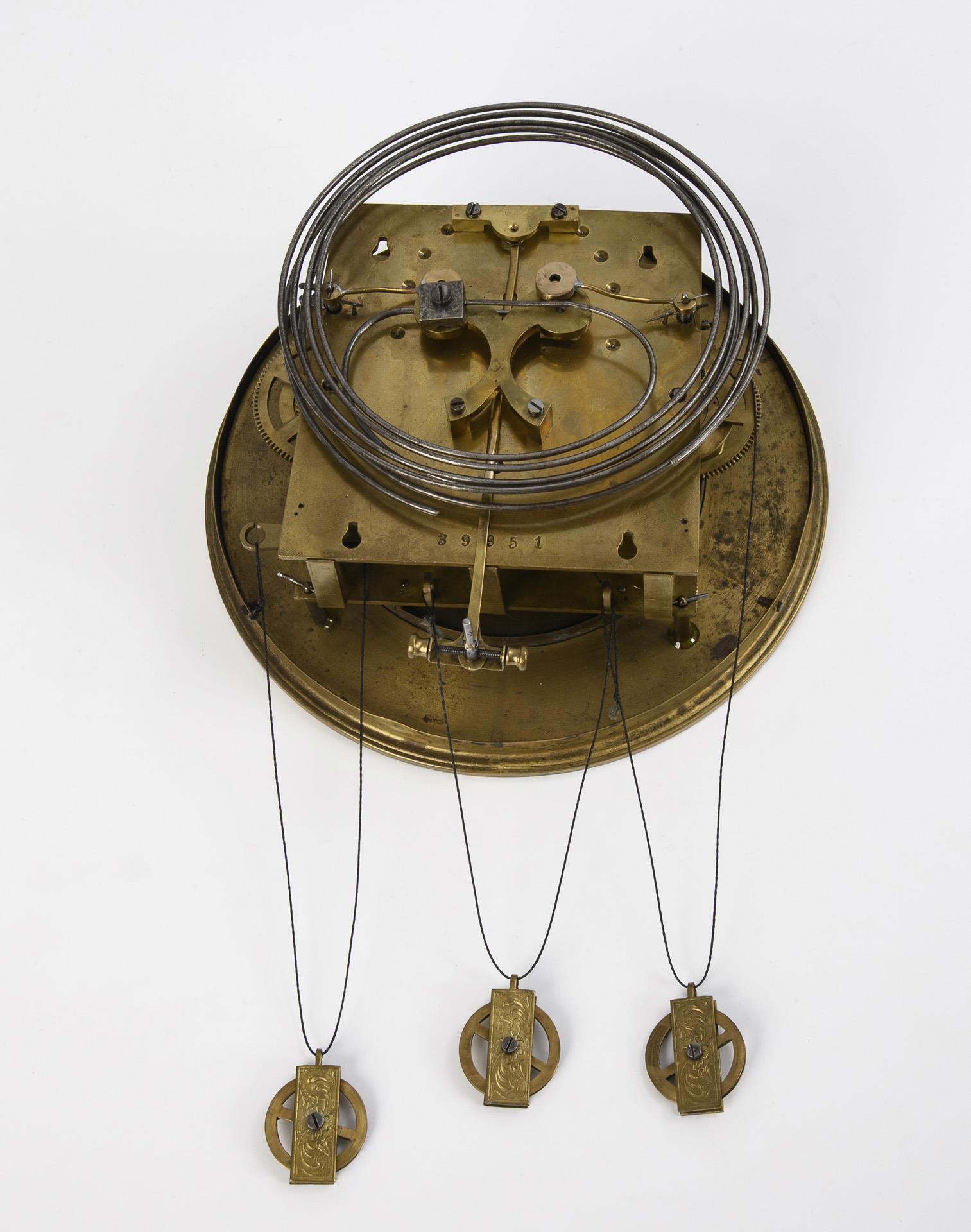 Mit Kurbel, Pendel und 3 Gewichte mit floralen Gravuren.