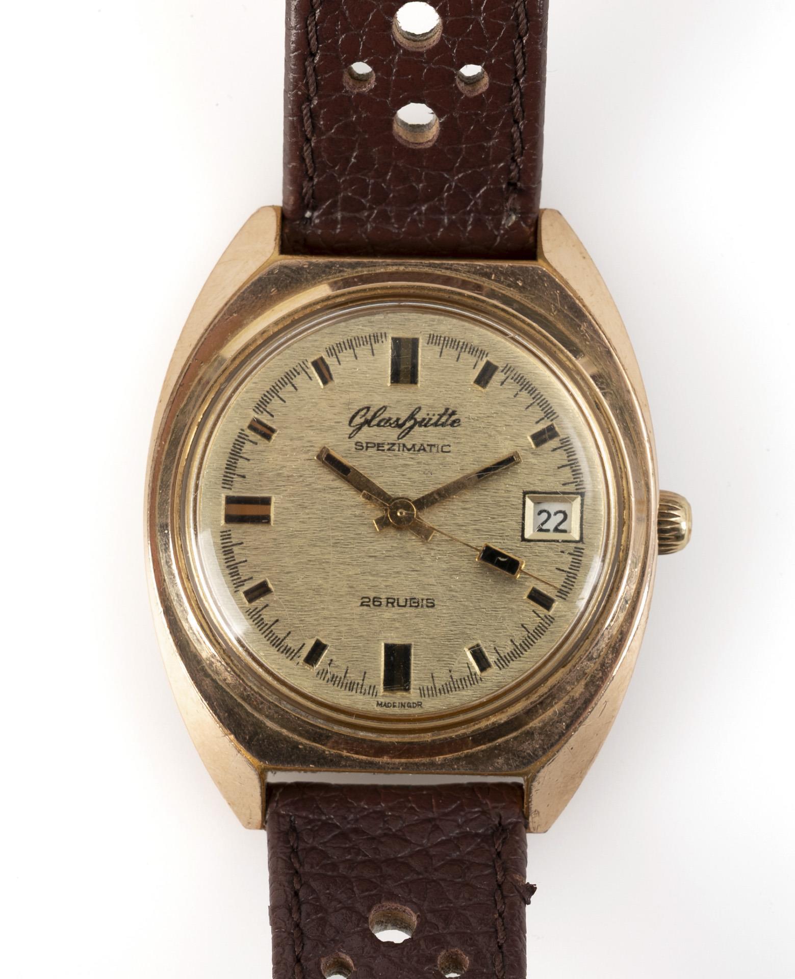 Automatische Armbanduhr "Glashütte Spezimatic" in Etui. VEB Uhrenbetriebe Glashütte.