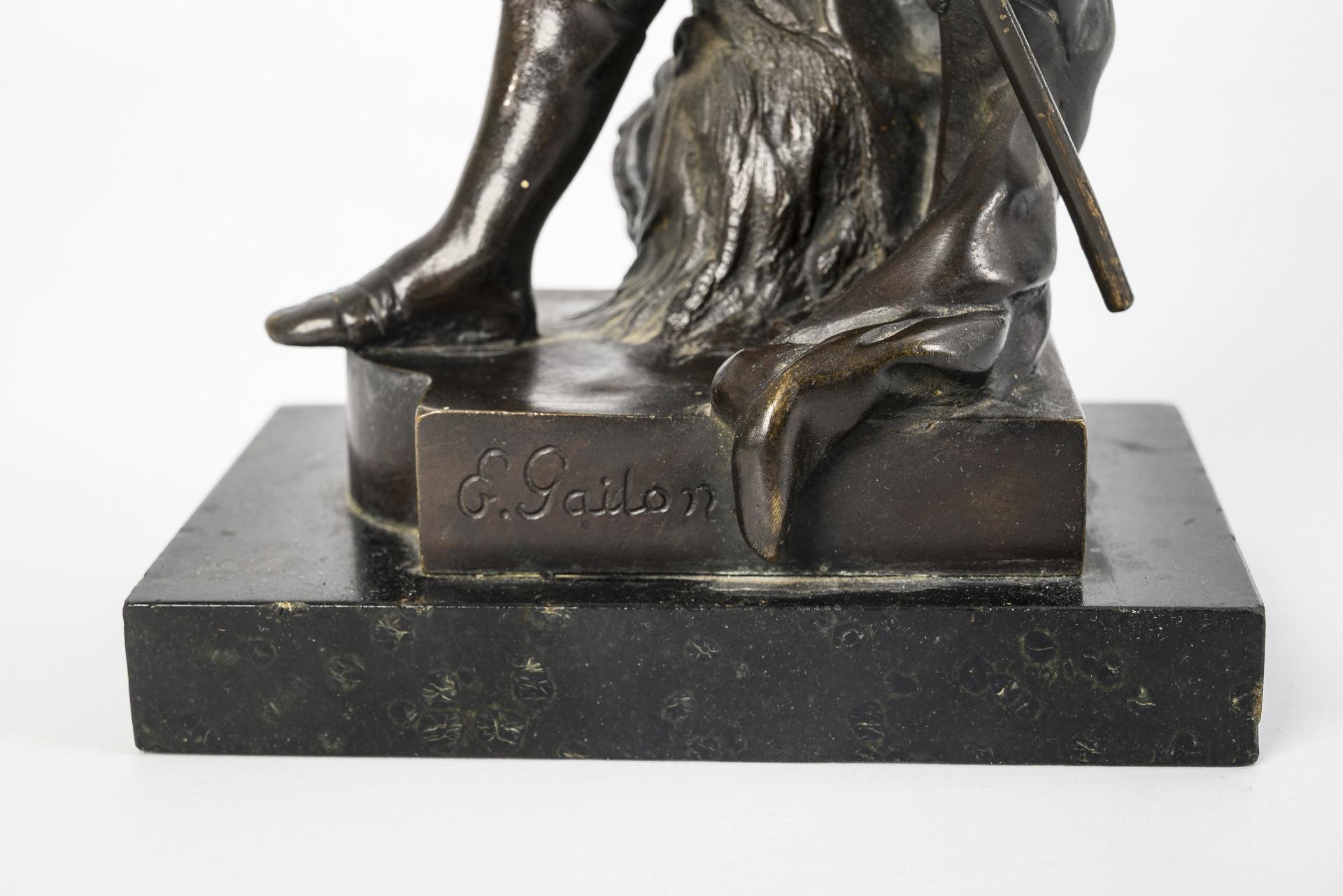 Bronze patiniert, Steinsockel. Signiert an Bronzeplinthe, Gravur "Honneur Patrie" an der Innenseite des Schildes. 31 x 14 x 13,5 cm. 3,7 kg.