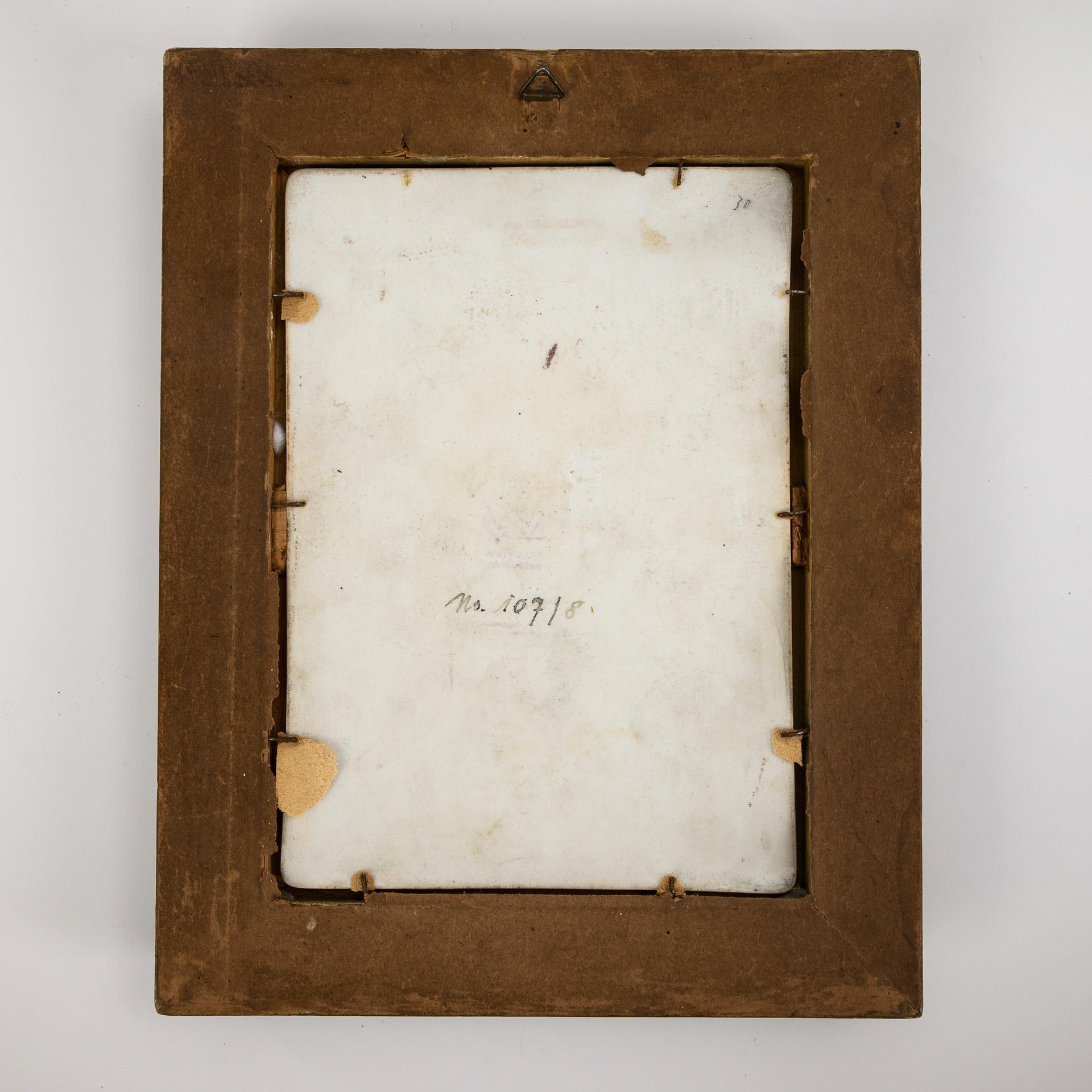 Polychrome Malerei. 19 x 13,5 cm, im Stuckrahmen (25,5 x 20 cm).