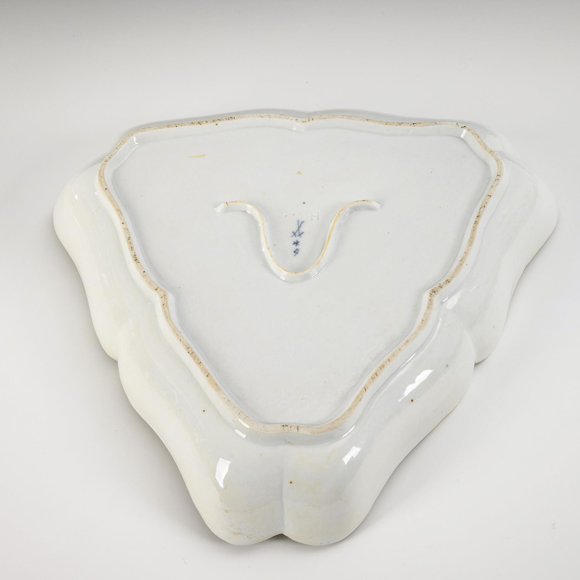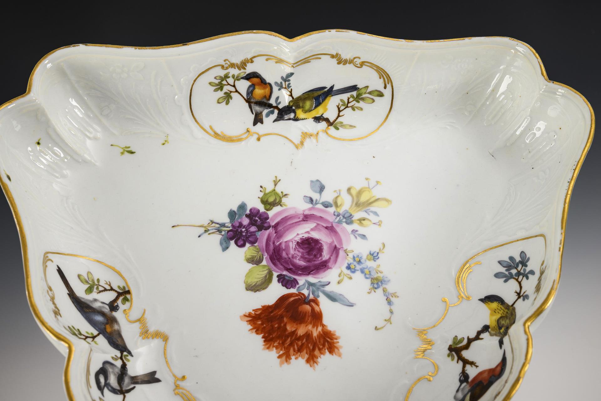 Dreiecksschale mit Blumen- und Vogelmalerei. Meissen.