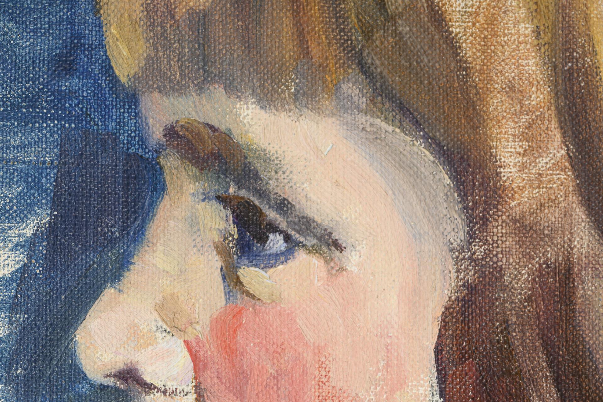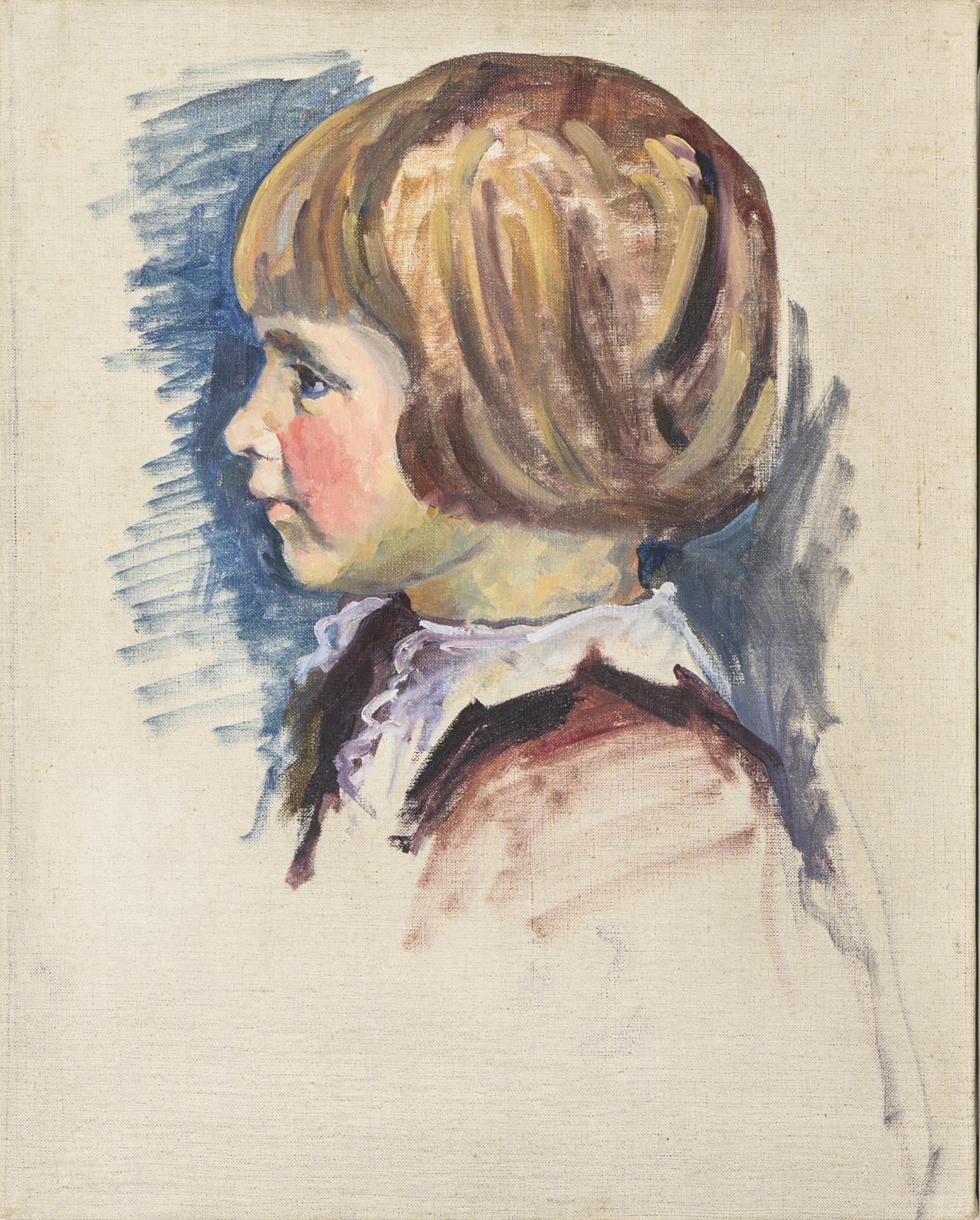 Porträt eines Mädchens im Profil auf teils belassenem Hintergrund sowie Bildnis eines Jungen mit Apfel oder Kugel.