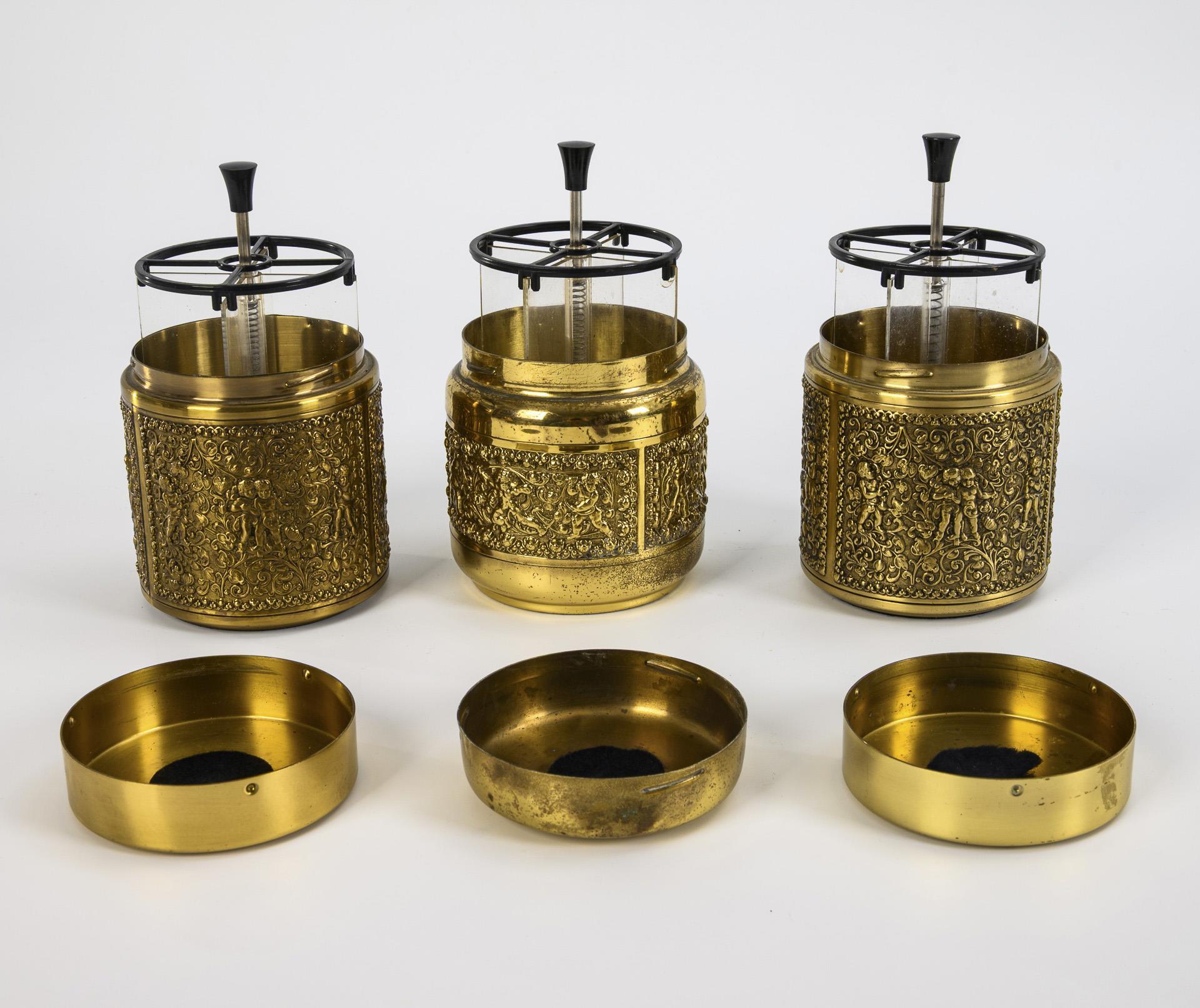 2 Schatullen und 3 Zigarrenspender. Erhardt & Söhne.