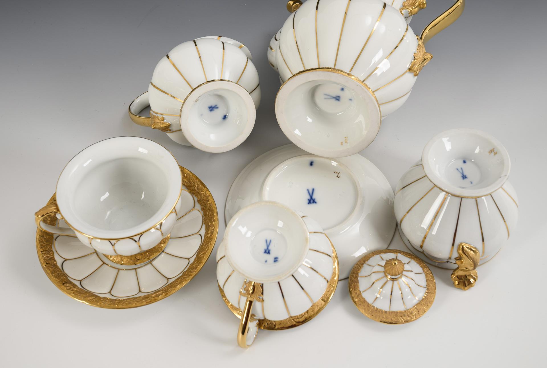 Weiß mit Goldstaffage, teils goldbronziert. H max. 17,5 cm.