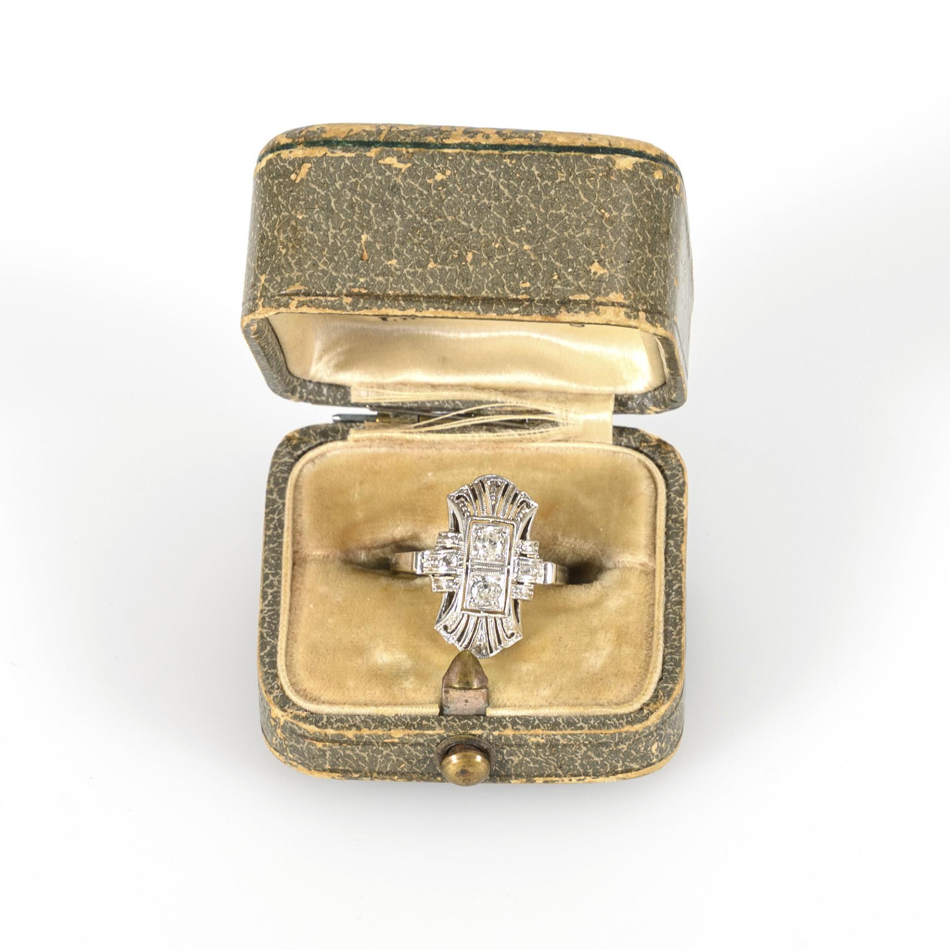 Art déco-Ring mit 2 Altschliff-Brillanten.