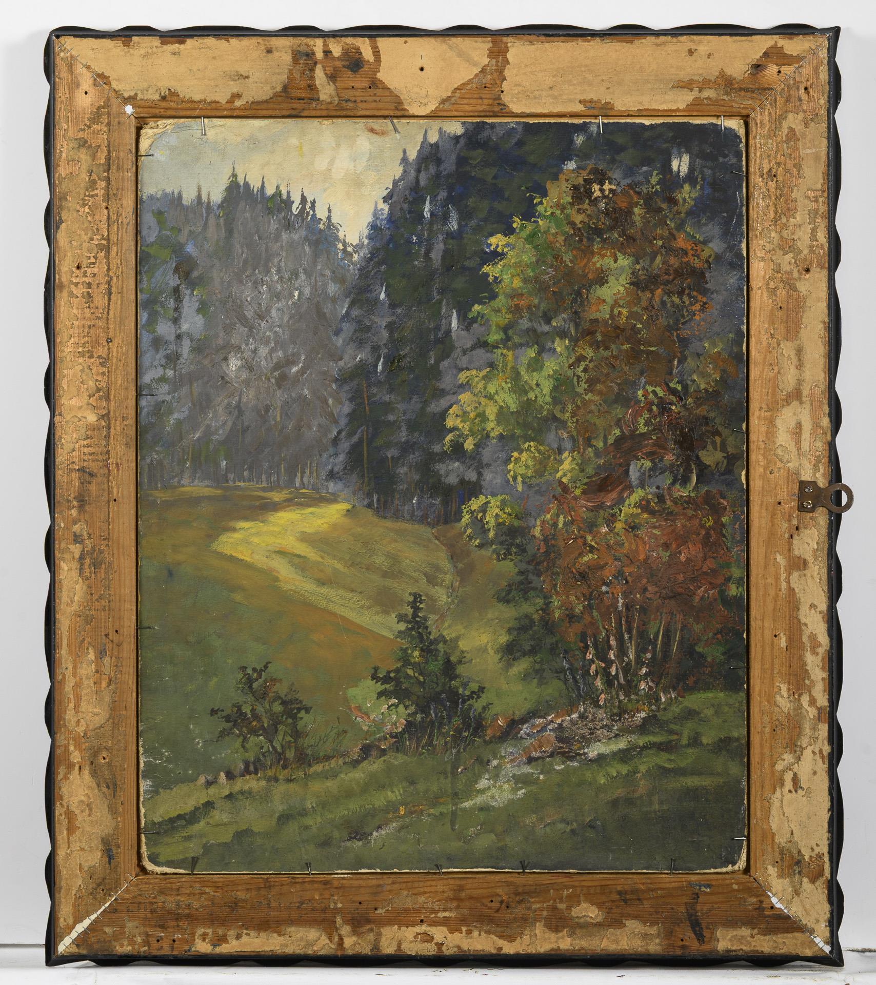 Öl/Malkarton. Unsigniert, verso ausgeführte Waldlandschaft. Anfang 20. Jh.
