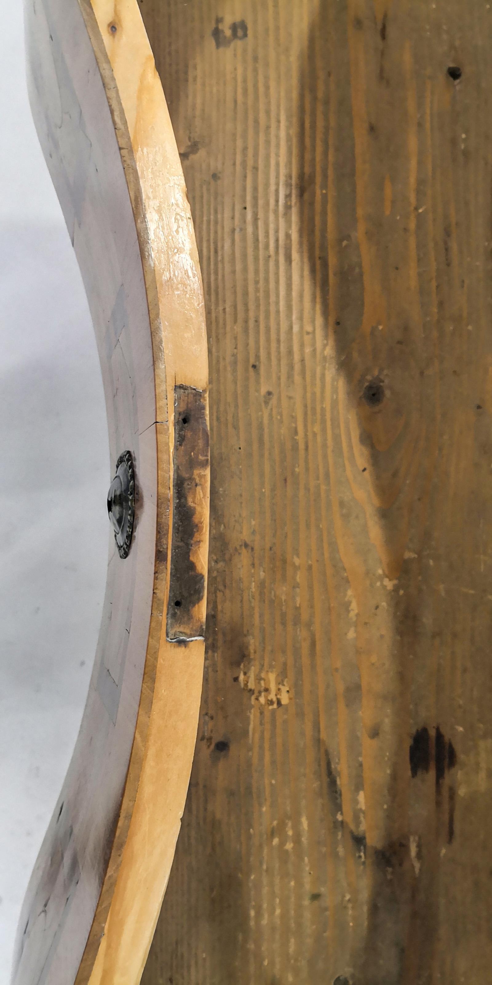 Nussbaum furniert, marketiert. Ca. 74 x 110 x 61 cm.