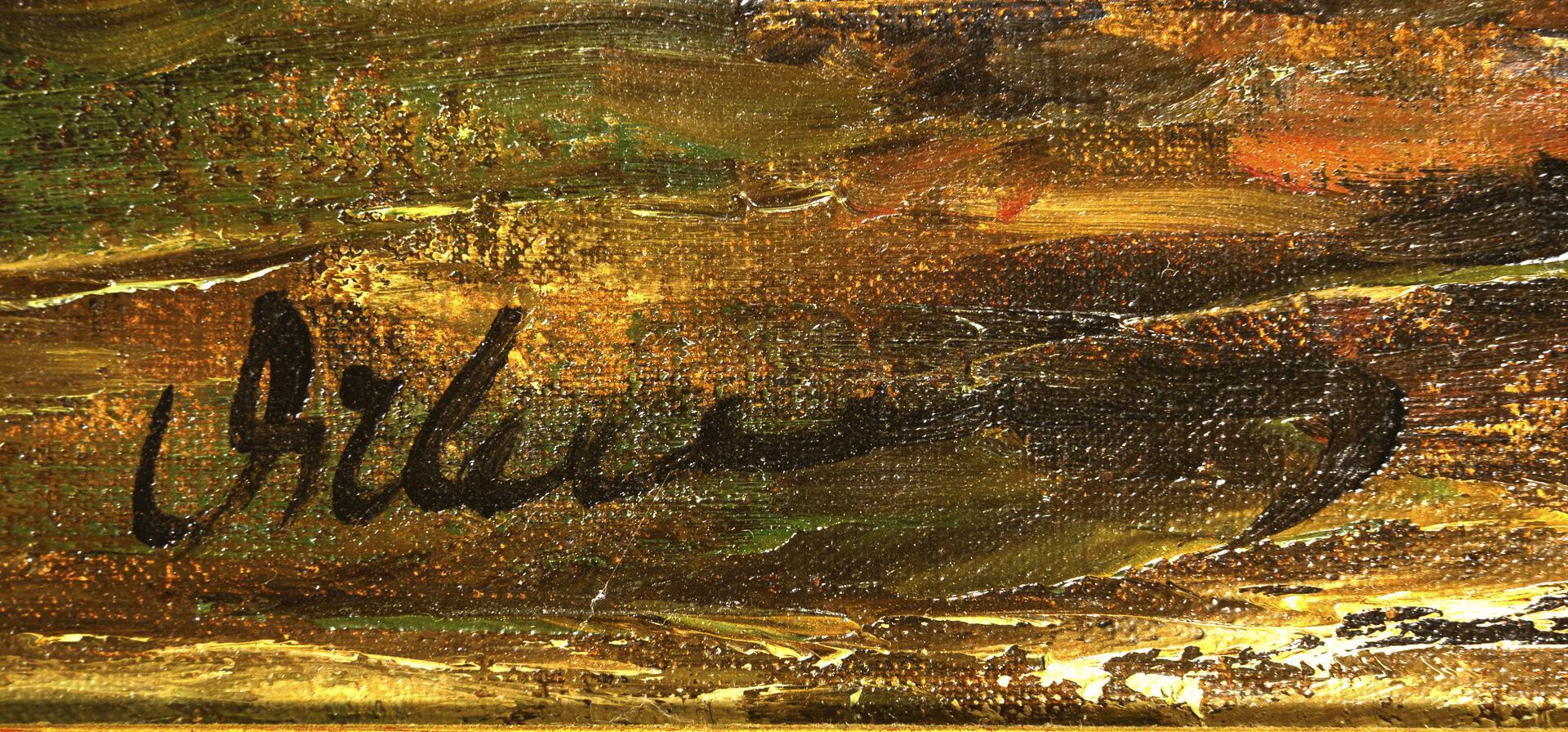 70 x 80 cm. gerahmt : 92 x 102 cm (Goldstuckrahmen).