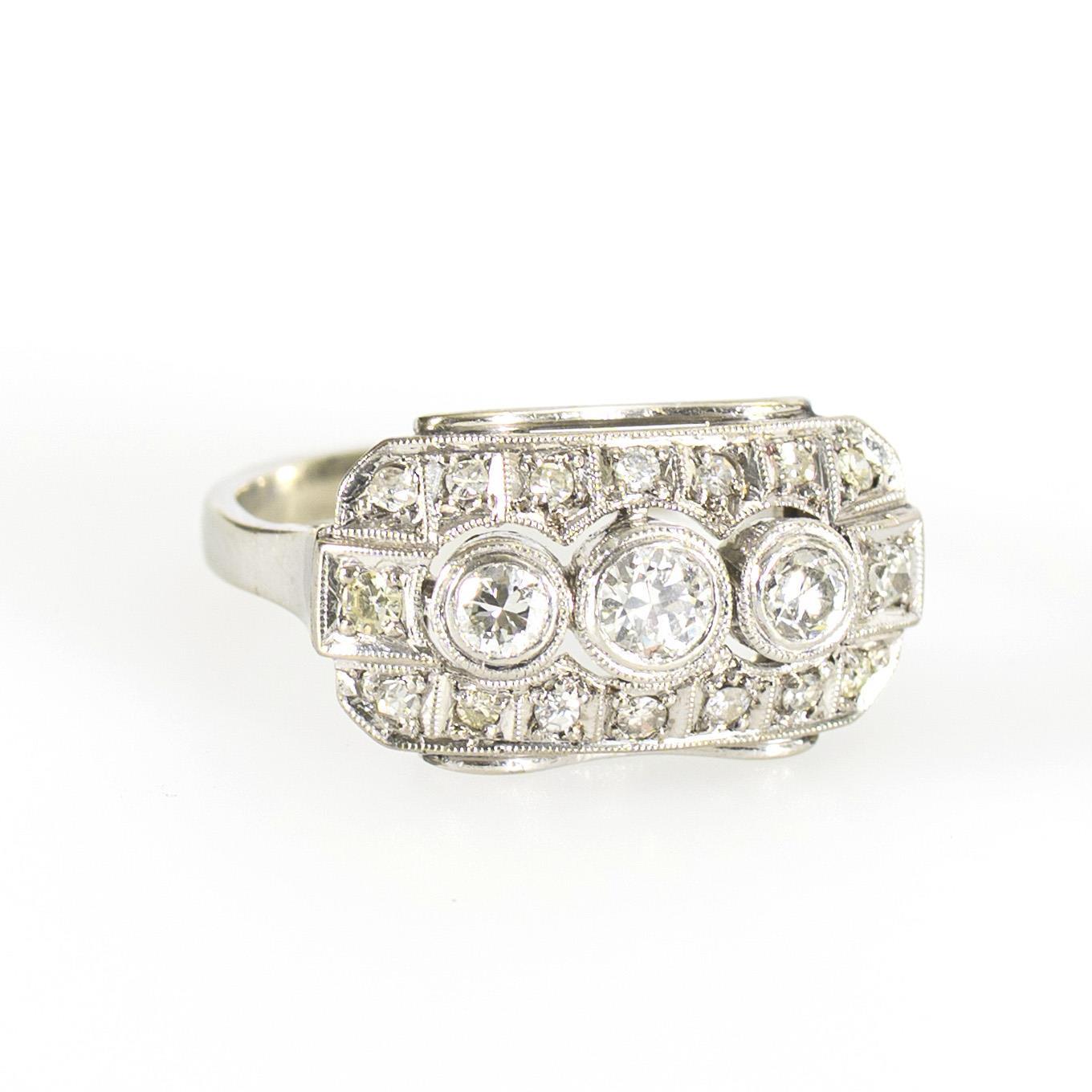 Art déco-Ring mit Altschliff-Brillanten.