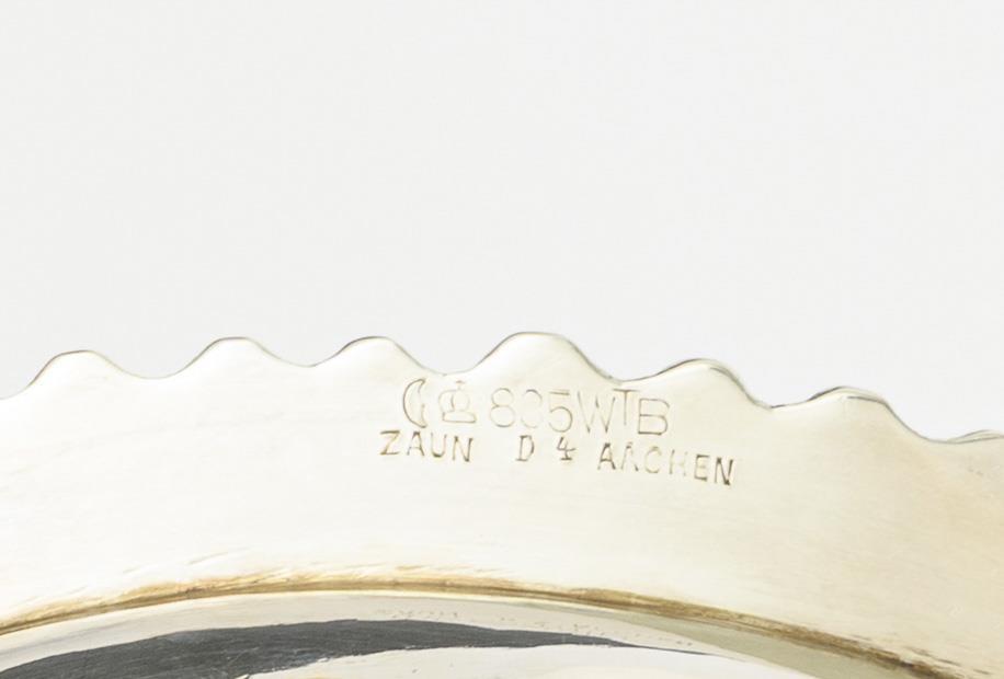Halbmond/Krone/835/Firmenzeichen gepunzt, mit Juwelierstempel Zaun, Aachen.