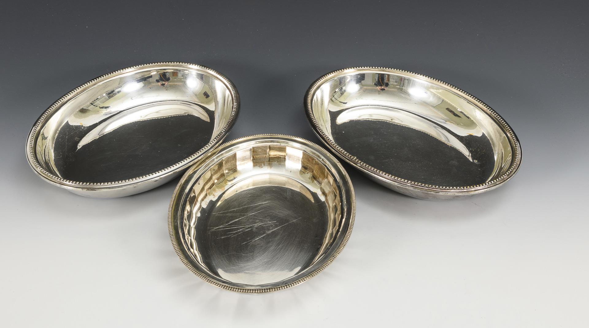 3 ovale Deckelschalen mit abnehmbarem Deckelknauf. Gebrauchsspuren, Versilberung teils berieben.