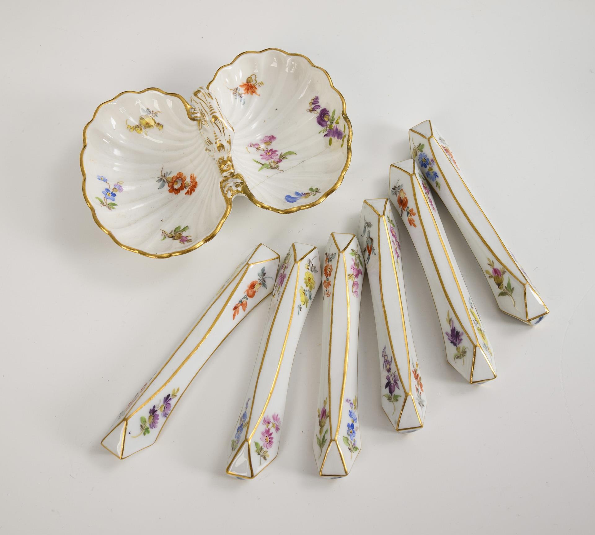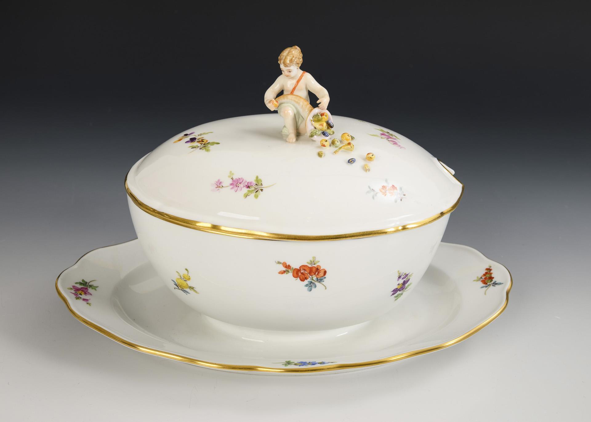 Speiseservice mit Streublümchenmalerei. Meissen.