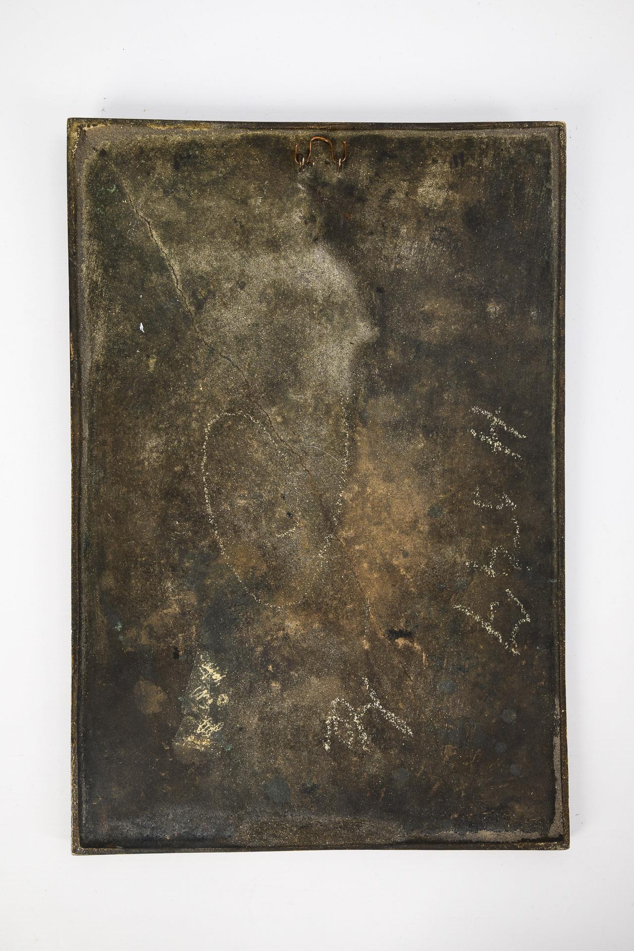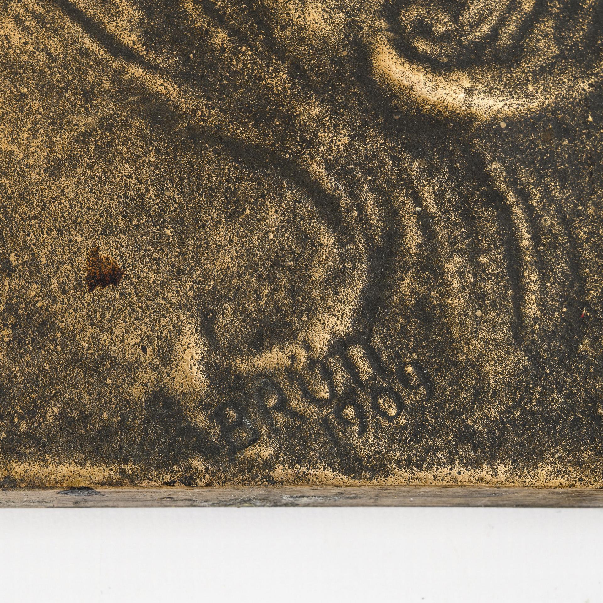 Bronze patiniert. 1909. Rechts unten signiert "BRÜTT 1909" sowie Gravur in der linken unteren Ecke "Widmung der Deutschen Schillerstiftung". 37,5 x 25,5 cm. 3,7 kg.