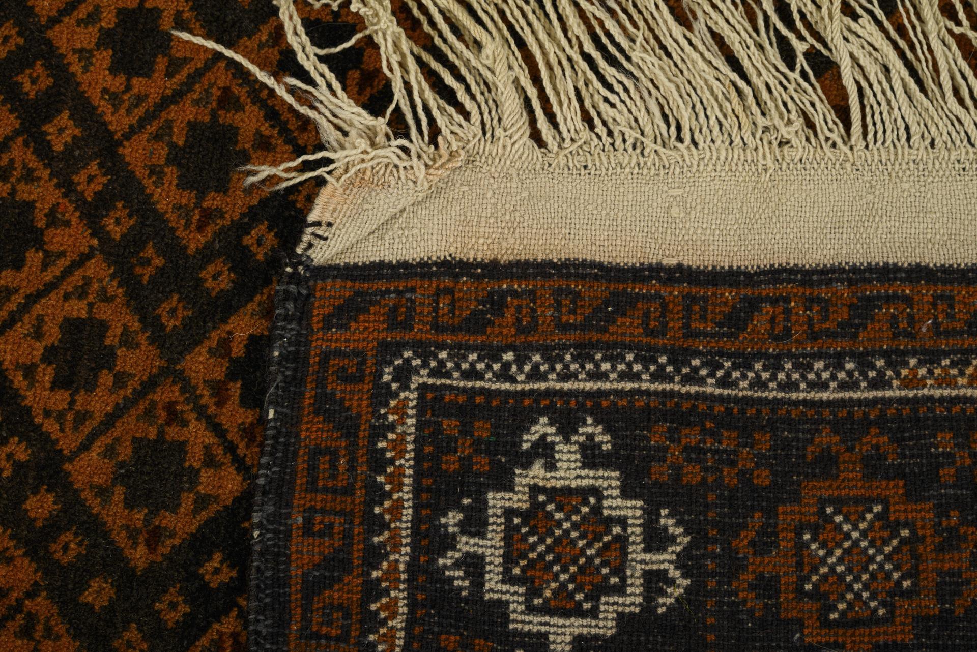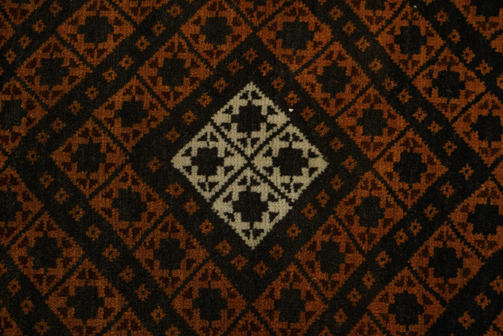 Wolle, handgeknüpft. Monochromdekor in Brauntönen, Orange, Rot und Elfenbein. Ca. 205 x 109 cm.