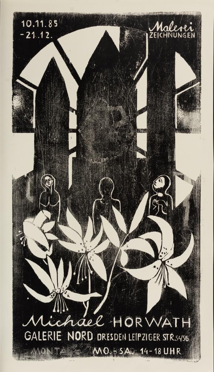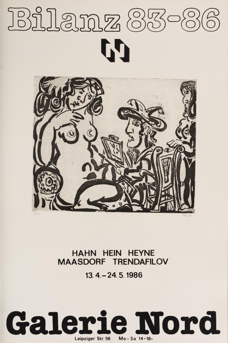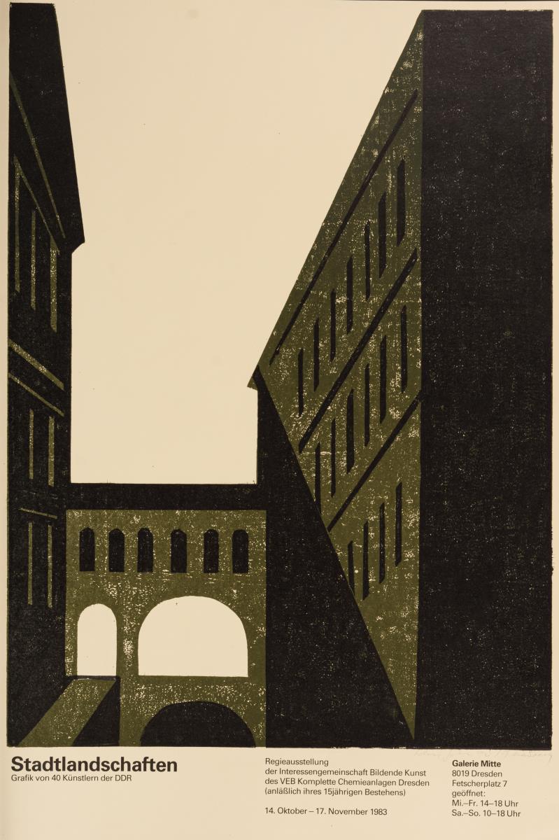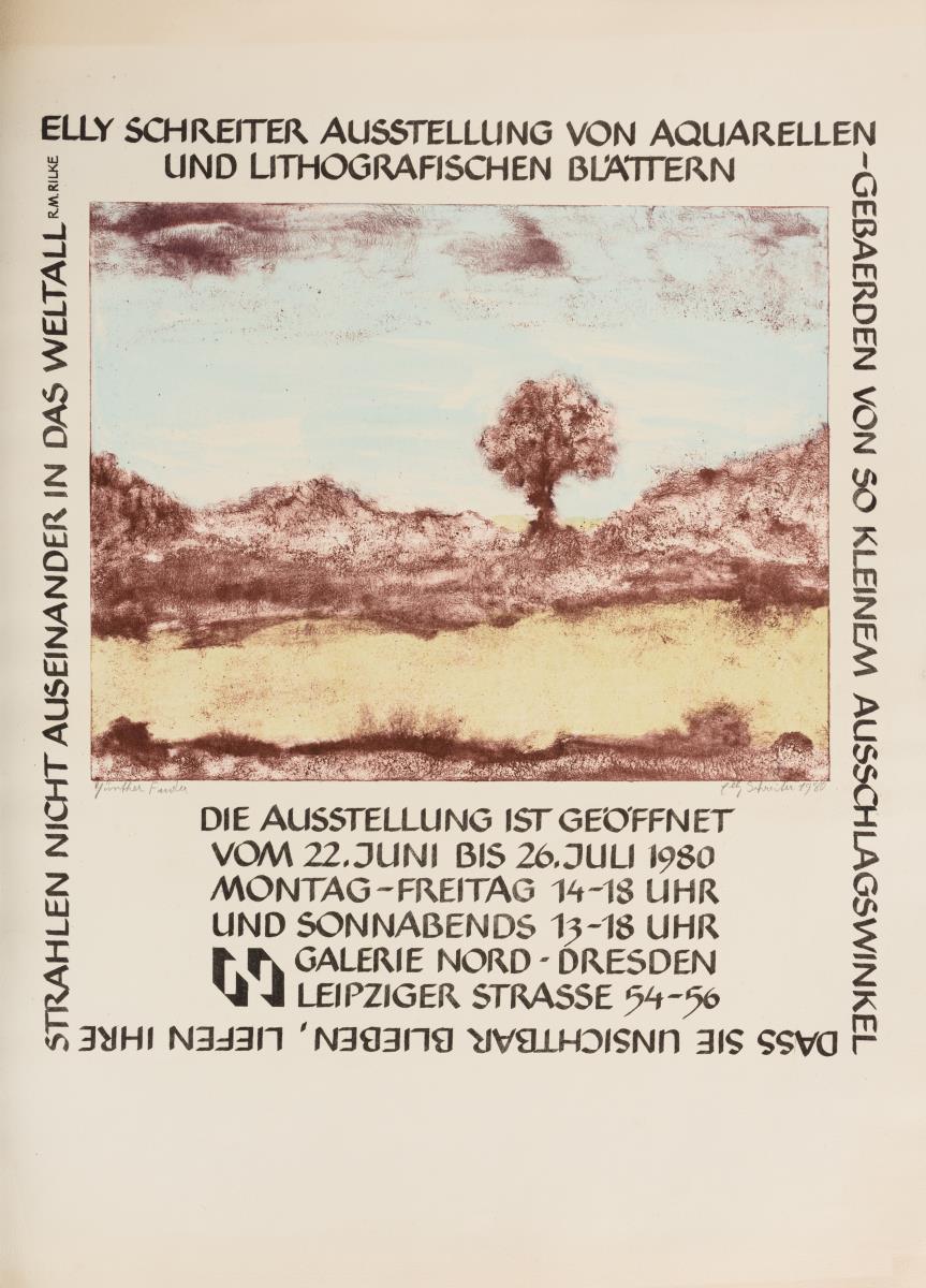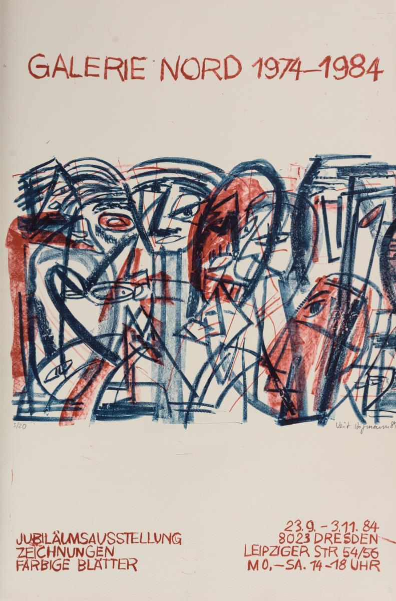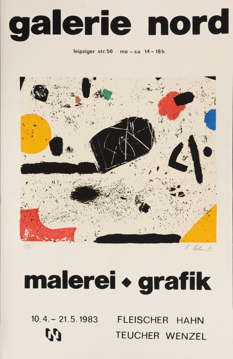2x Galerie Mitte: "Horst Weber", 1982 und "Stadtlandschaften - Grafik von 40 Künstlern der DDR", 1983; 9x Galerie Nord: "Jürgen + Gertraude Seidel", 1978, "Elly Schreiter", 1980, "Günter Hein", 1988, "Michael Horwath", 1985, "Bilanz 83 - 86", 1986, "Klaus Drechsler", 1983, "Galerie Nord 1974 - 1984", 1984, "10 Jahre Galerie Nord", 1984 und "Fleischer, Hahn, Teucher, Wenzel", 1983; 2x Kunstausstellung Kühl: "Malerei - Grafik - Sibylle Leiffer", 1987 und "Werner Wittig", 1980 sowie 2x Glockenspielpavillon: "Chile En El Corazon - Ausstellung chilenischer Künstler im Exil", 1977 und "Dresdner Grafik", 1978. Teils mit kleinen Knicken und Rissen.
