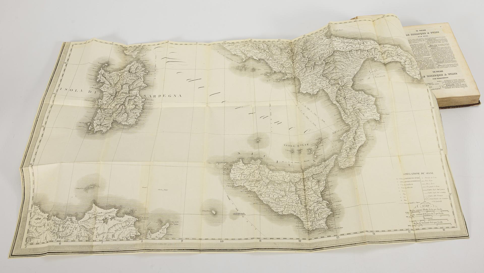 Titelblatt, (4), (8 Seiten Register falsch gebunden, gehören an das Buchende), 42, 492 (bzw. 499) Seiten, mit 15 Faltkarten und einer einseitigen Karte. Darunter zwei große Landkarten von Nord- und Süditalien. (Es fehlen wohl drei Karten). Kleinere Illustrationen. Goldgeprägter Halbledereinband. Vorhandene Karten von: Nord- und Süditalien, Turin, Genua, Milano, Verona, Venedig, Triest, Bologna, Florenz, Rom, 2x Neapel, Pompeji, Palermo. Guter Erhaltungszustand, auch der Karten.