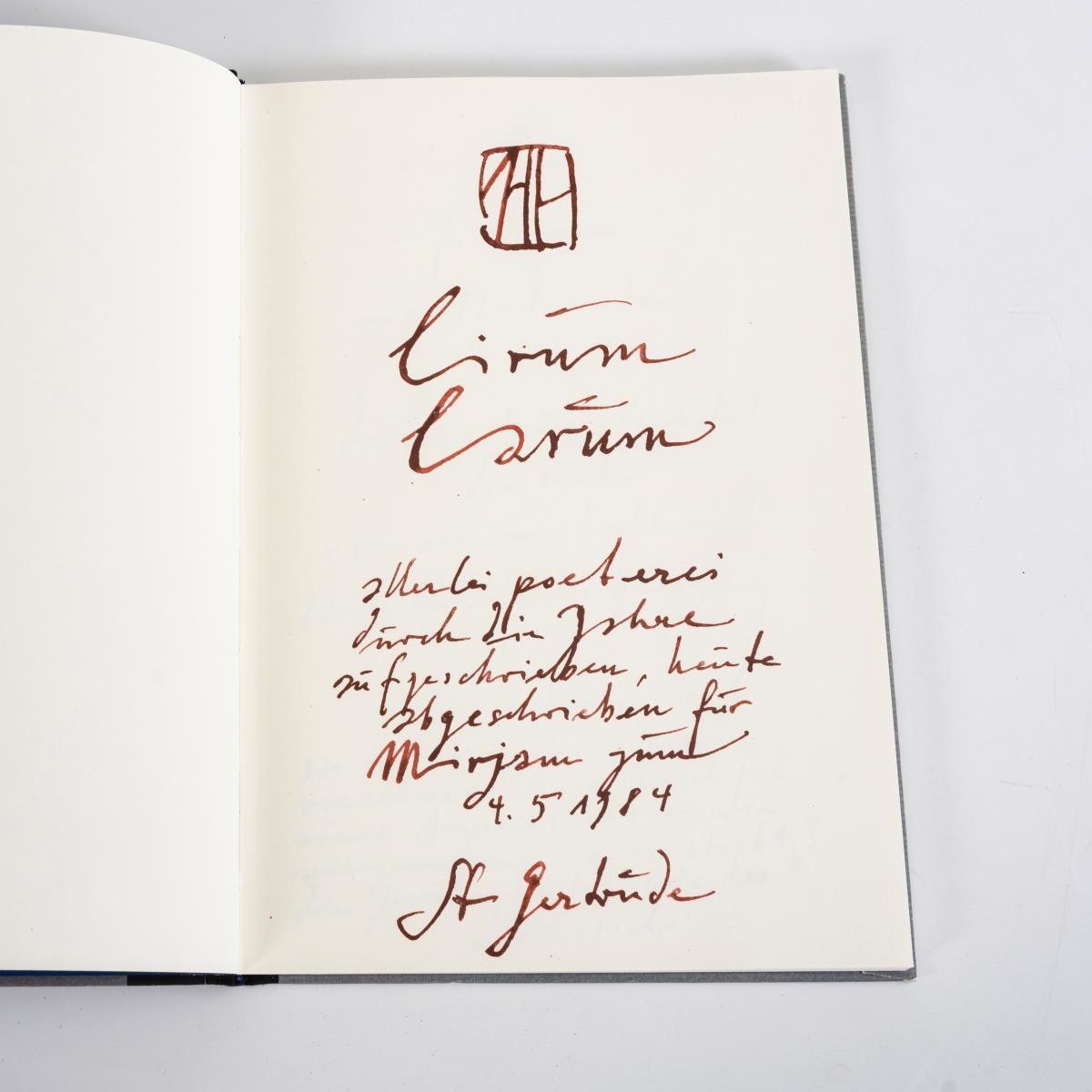 "Ballhaus Jahnke - Radierungen", Insel Verlag Frankfurt M. 1969, 117 Seiten, im Schuber / "Paranoia - 40 Pastelle ...", signiert, Verlag Galerie Brockstedt, Hamburg 1982. / "lirum, larum" signiert, St. Gertrude Verlag, Hamburg 1984 / "die Litze eine ziemlich lautlose Geschichte oder die Zeit der Kinder", signiert, St. Gertrude Verlag, Hamburg 1984, 73 Seiten. / "Ge-pferdte für Bettina" signiert, Hower Verlag (1973). / "Fixierte Augenblicke", 44 Photos aus der Ausstellung der Freunde der Photographie im Museum für Kunst und Gewerbe Hamburg, 1982. Kaum Gebrauchsspuren.
