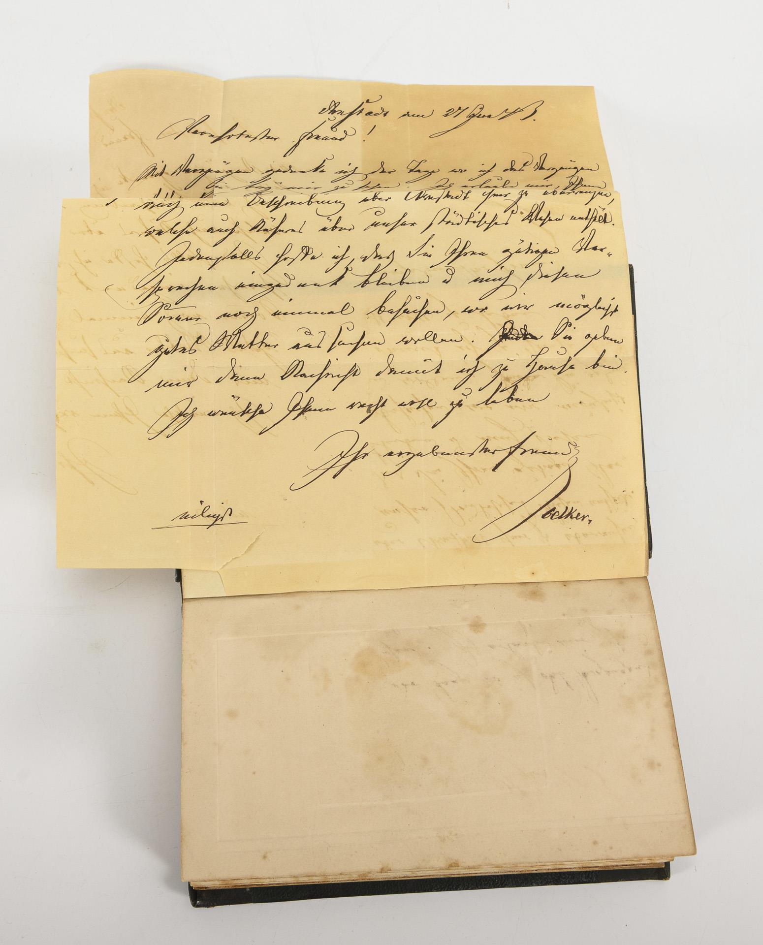 400 Seiten mit Bildnis Fürst Günther Friedrich Carl und einer Ansicht von Arnstadt. Eingeklebter Brief von Voelker. Im goldgeprägten Halbledereinband.