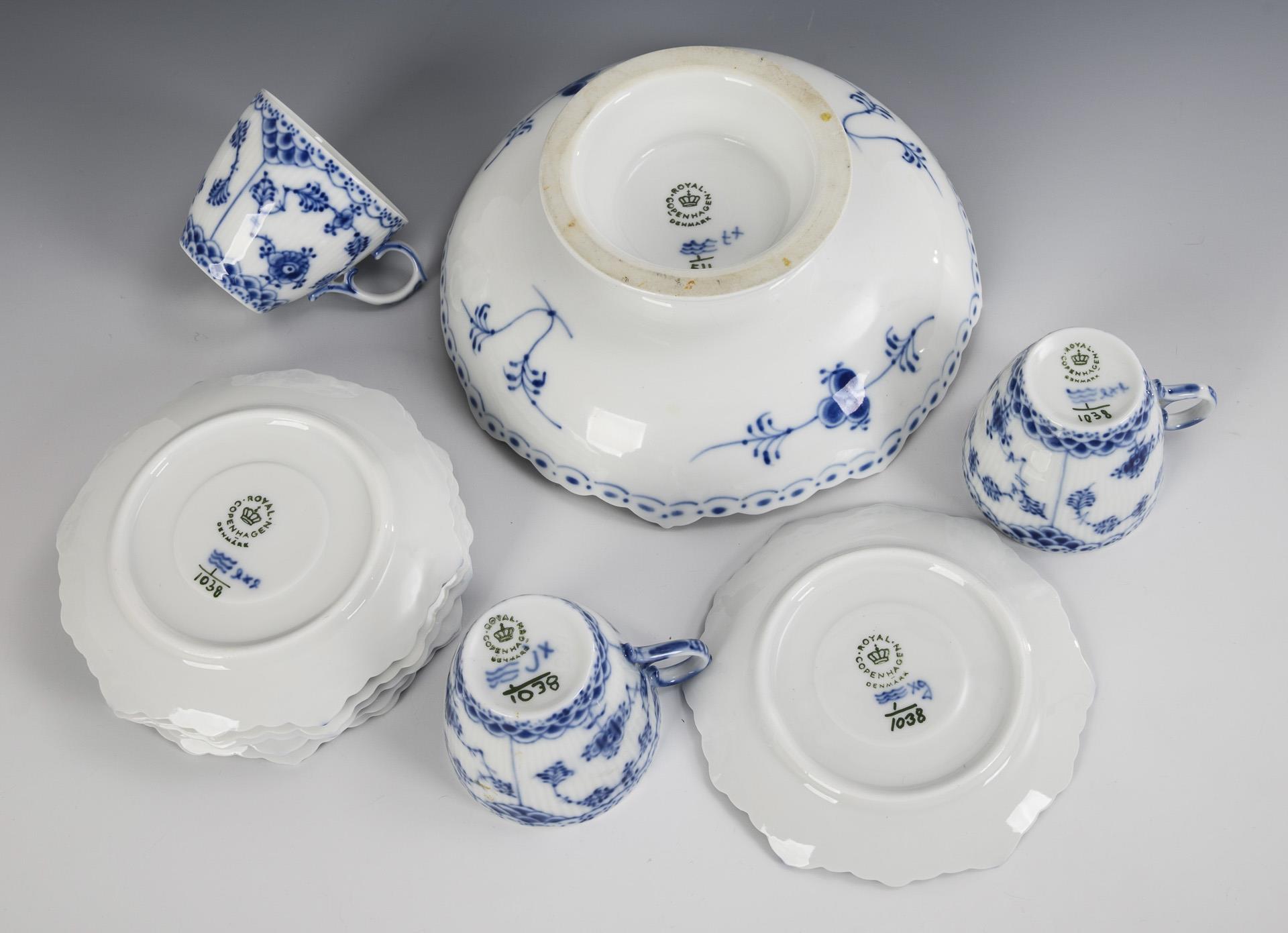6 Mokkatassen und 1 Tafelaufsatz "Musselmalet Vollspitze". Royal Copenhagen.