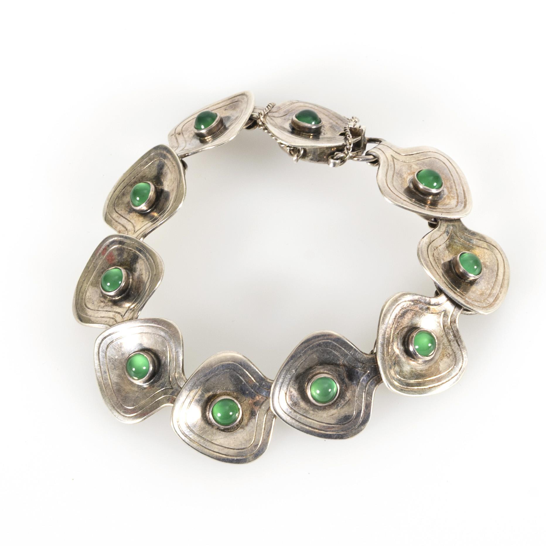 Schwedisches Midcentury-Silberarmband mit grünen Cabochons.