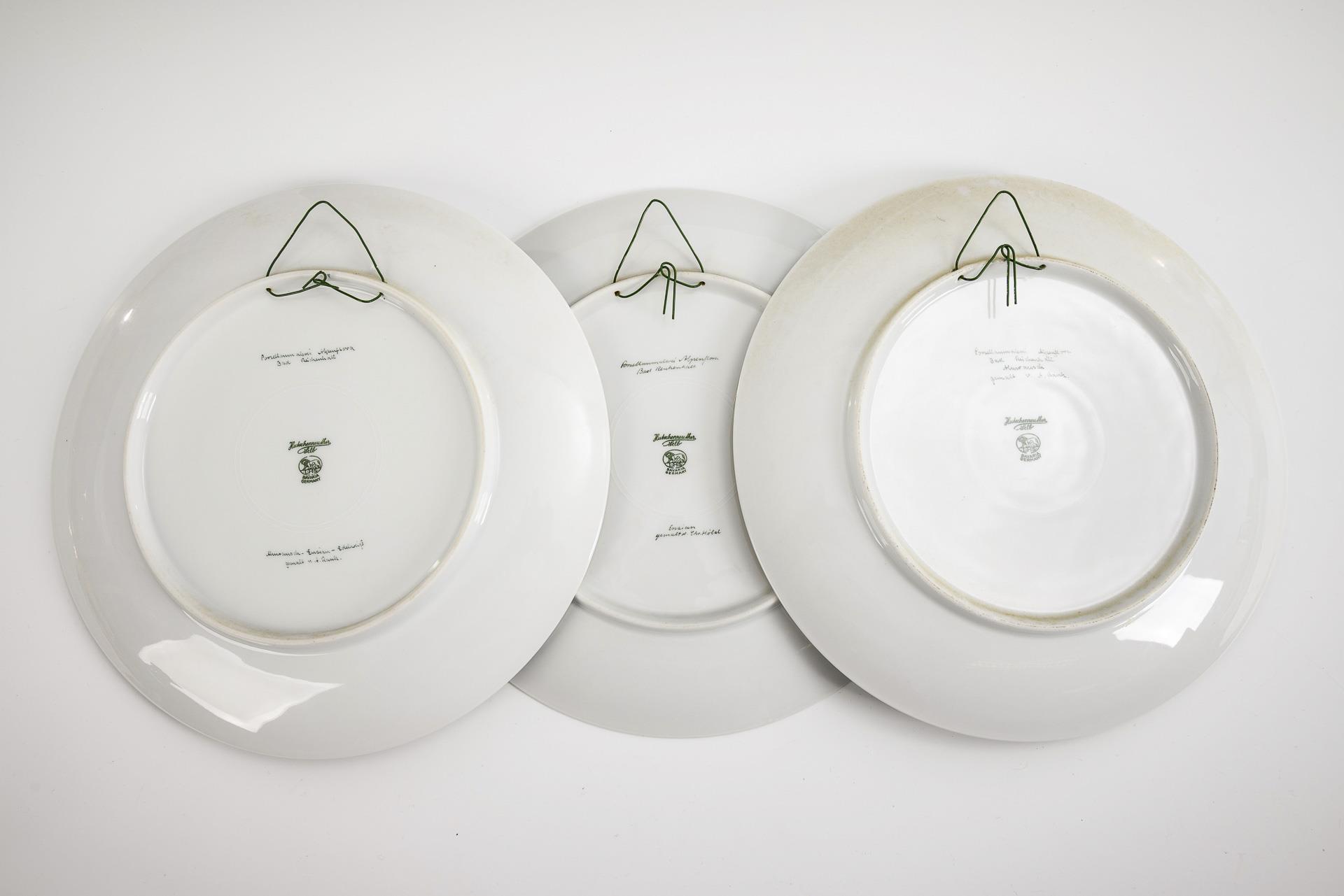 3 Wandteller mit Blumenmalerei. Hutschenreuther.