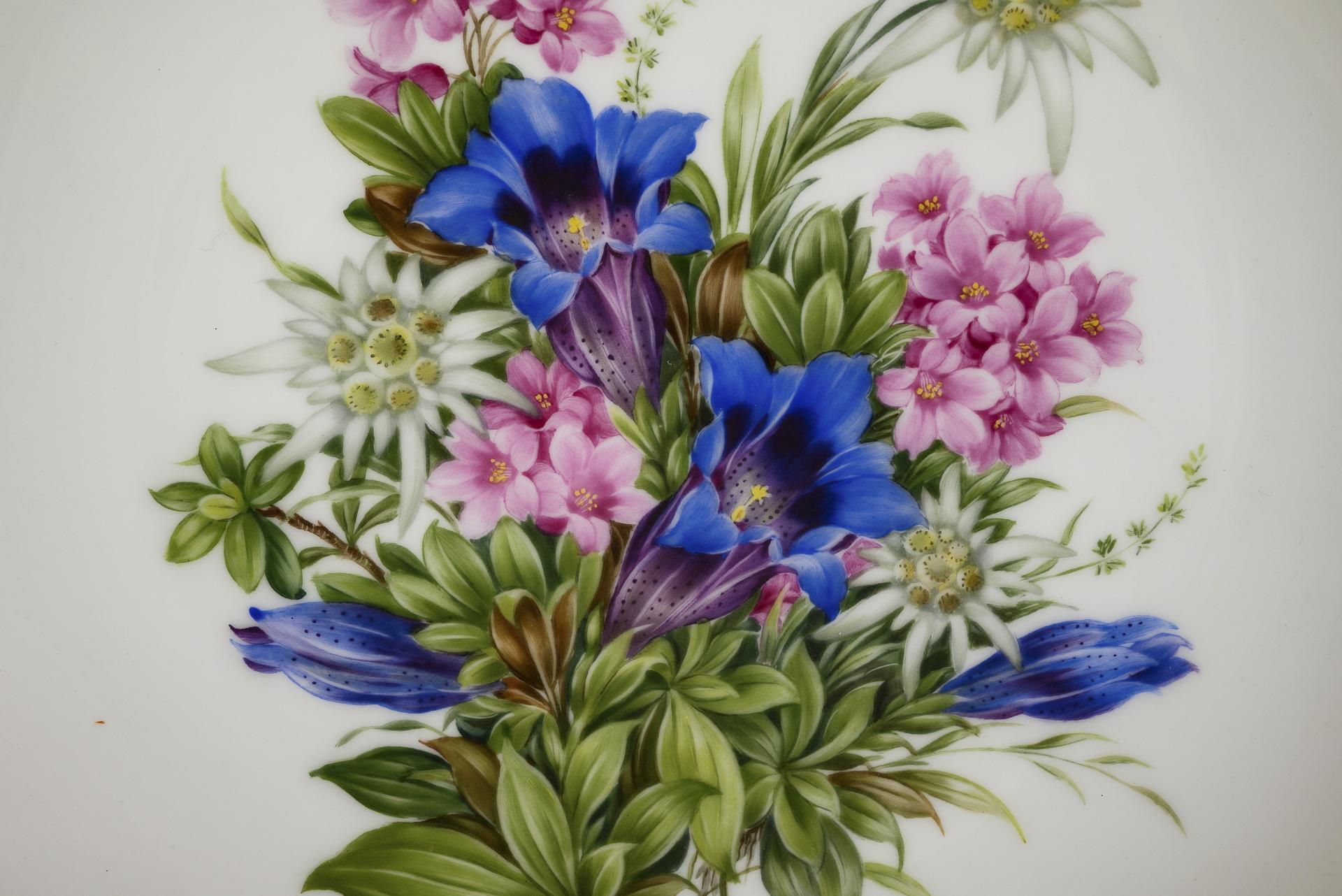 Löwenmarke, ab 1955, Porzellanmalerei Alpenflora Bad Reichenhall. Verso signiert.