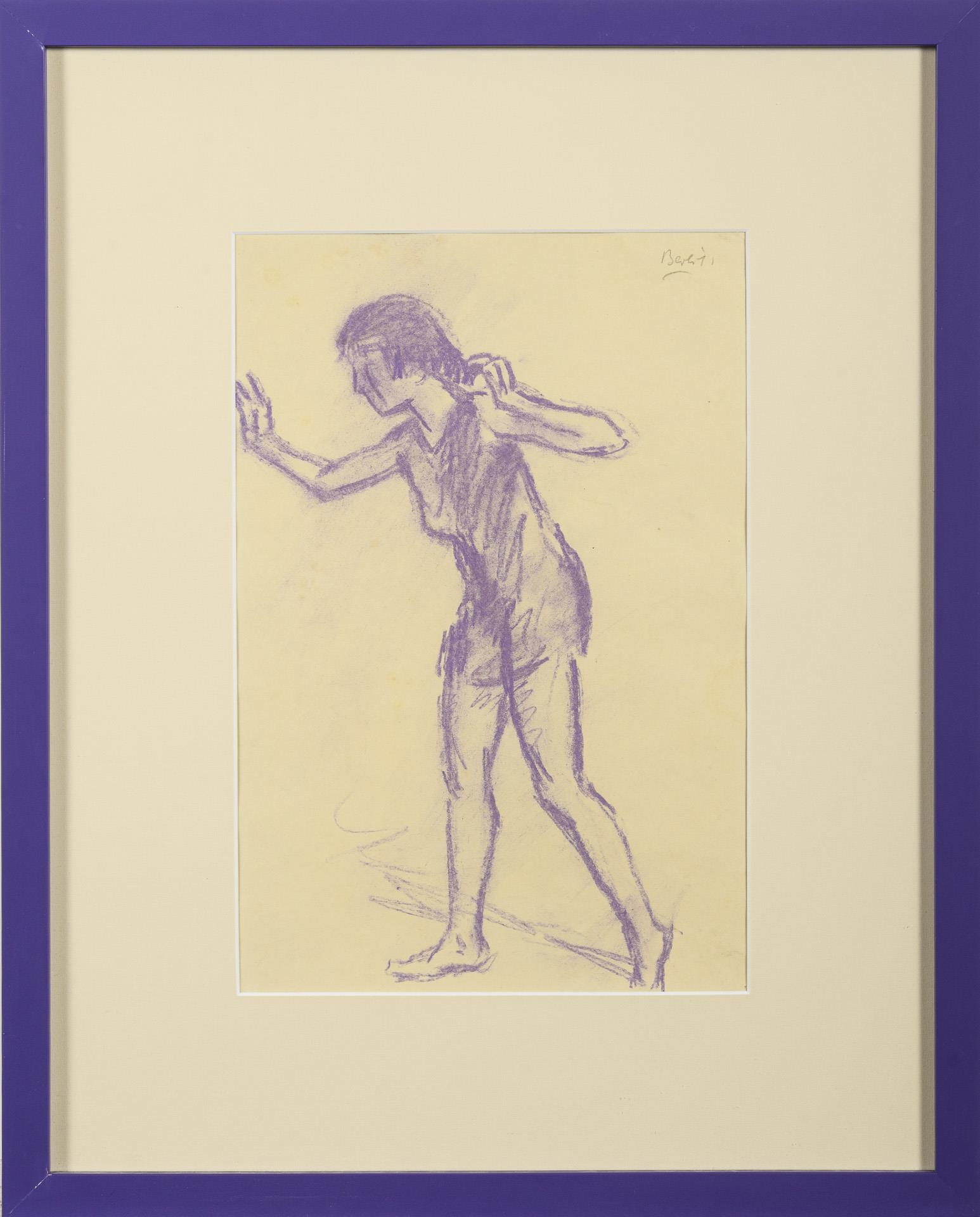 Wohl Darstellung von Martha Langensiepen (1893 - 1992). Rückseitig aufgeklebter alter Papierstreifen mit Titel. Junge Frau in der Bewegung.